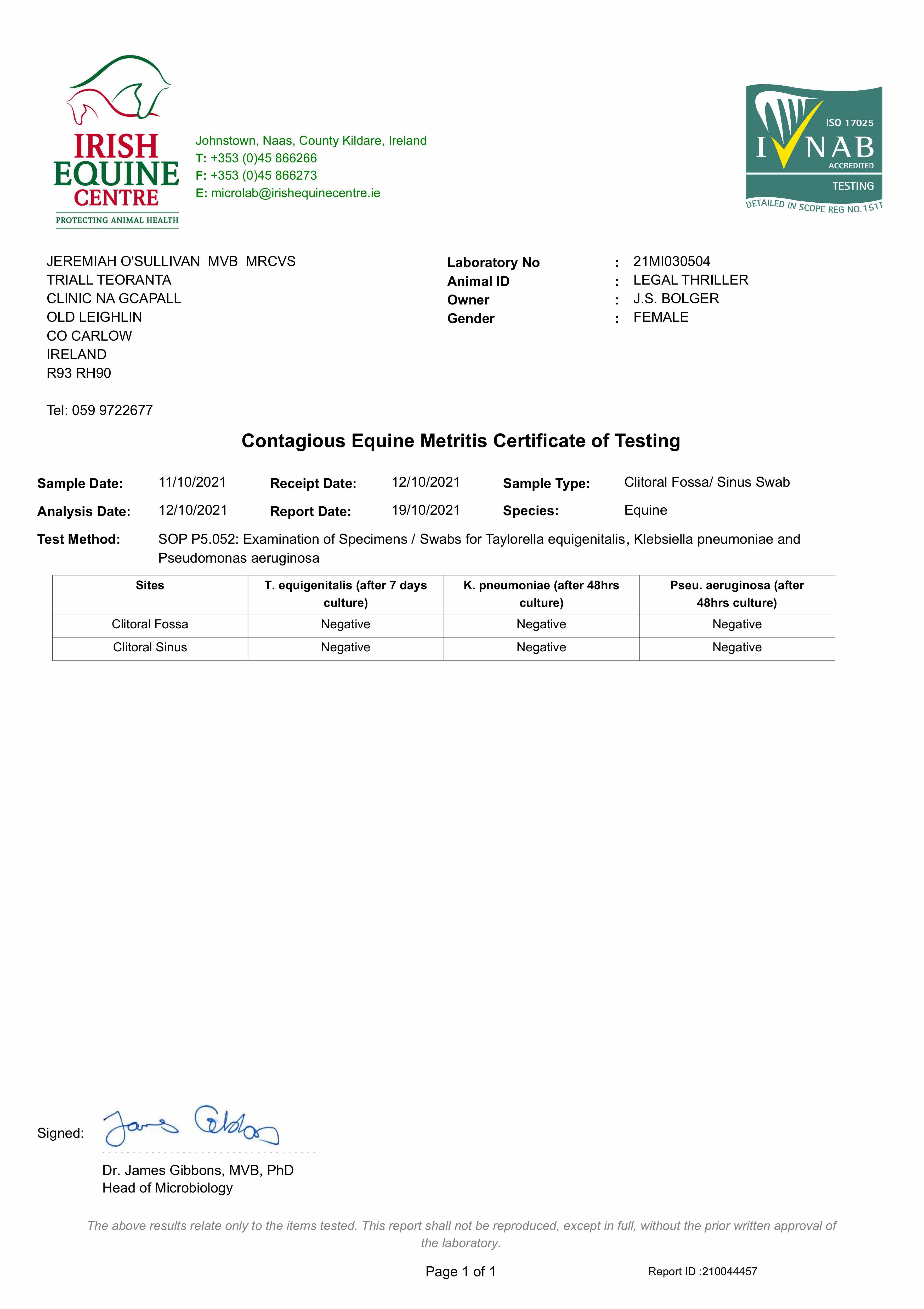 Fillies Examination Cert