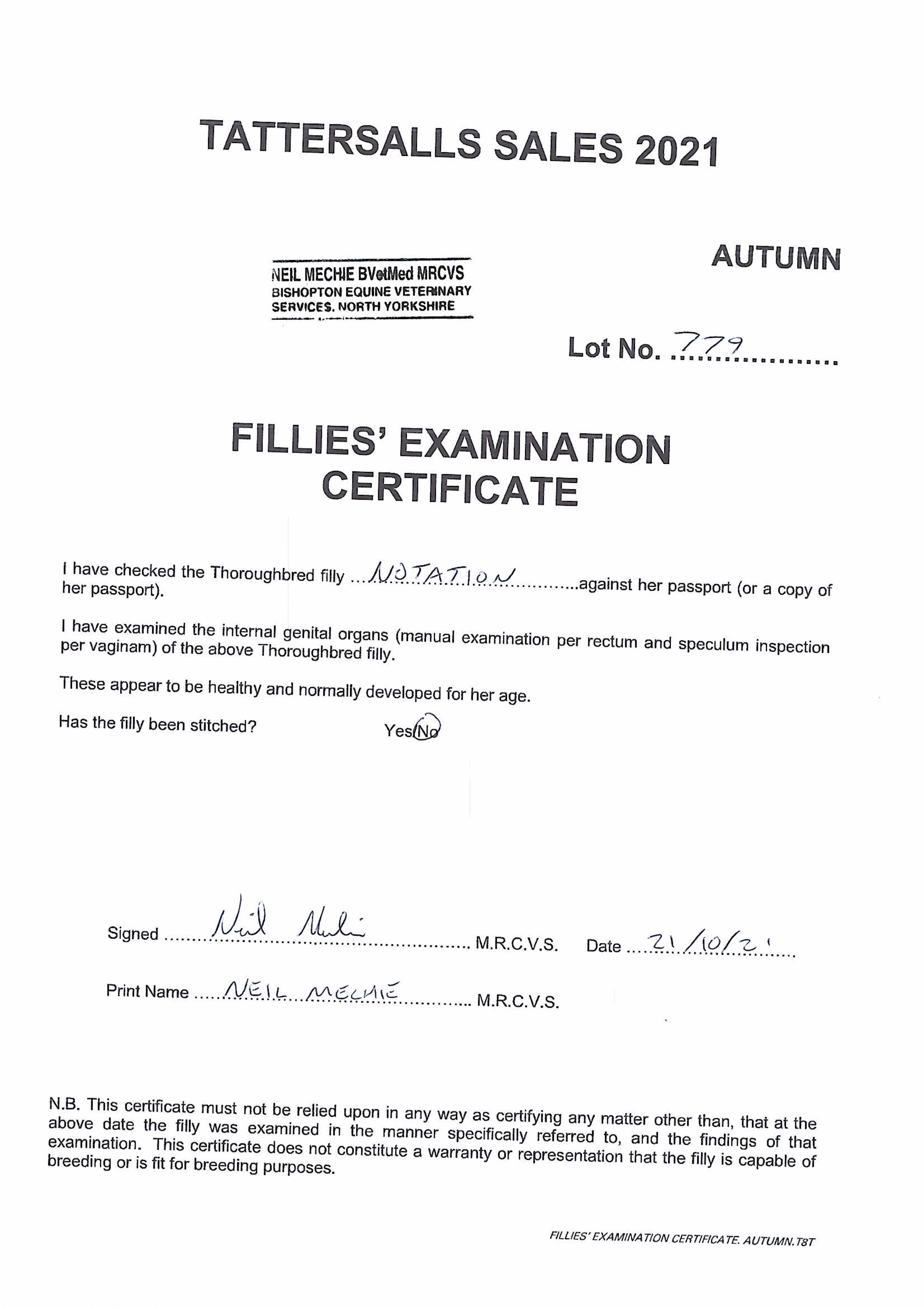 October Yearling Sale, Book 3 2019 lot 1618 F. by Night of Thunder (IRE) 2018, Friar Ings Stud=>Vendor 16,000 gns