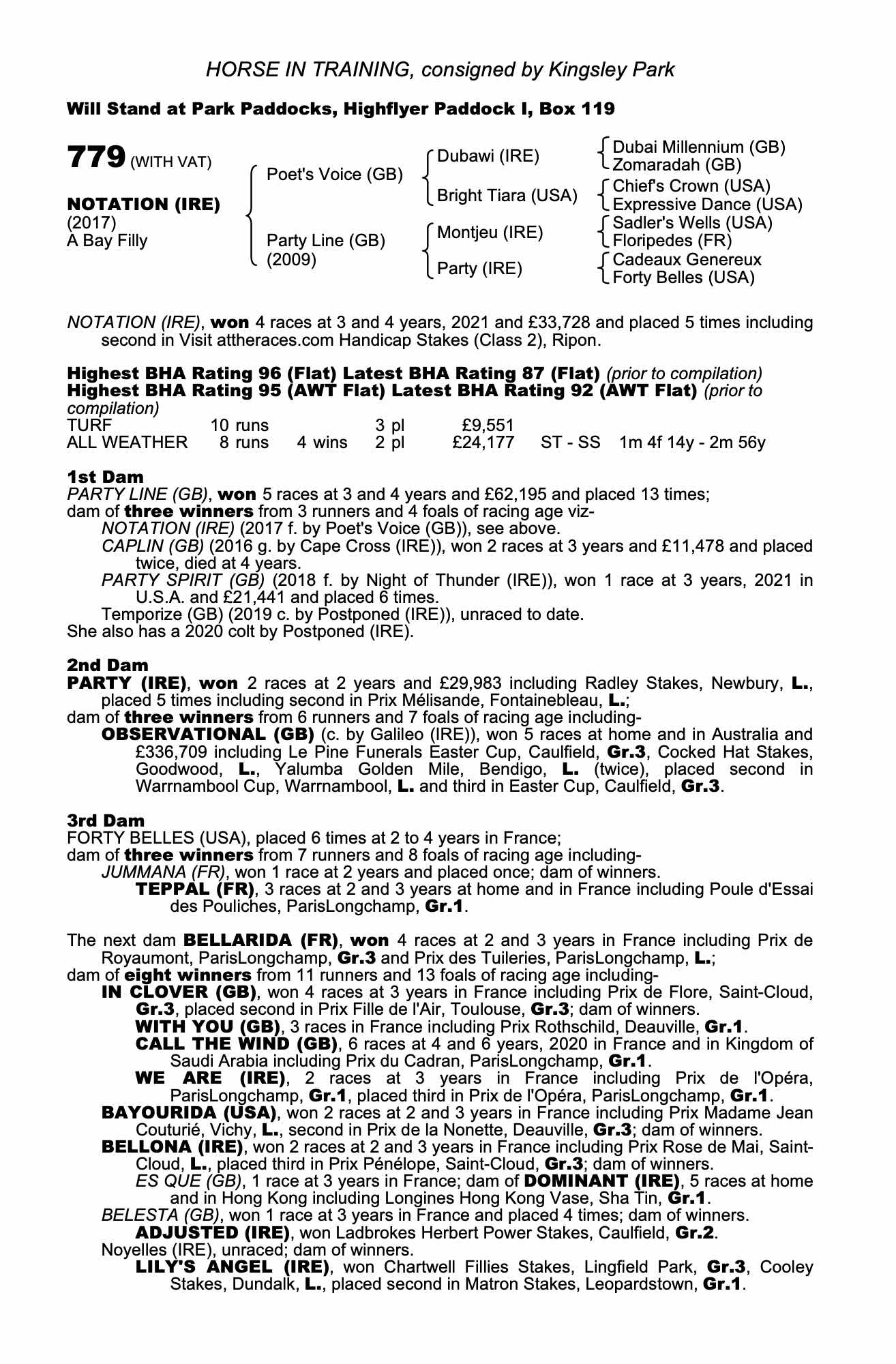 July Sale 2023 lot 532 Temporize (GB) (G. by Postponed (IRE)), Kingsley Park=>Syd Hosie 32,000 gns