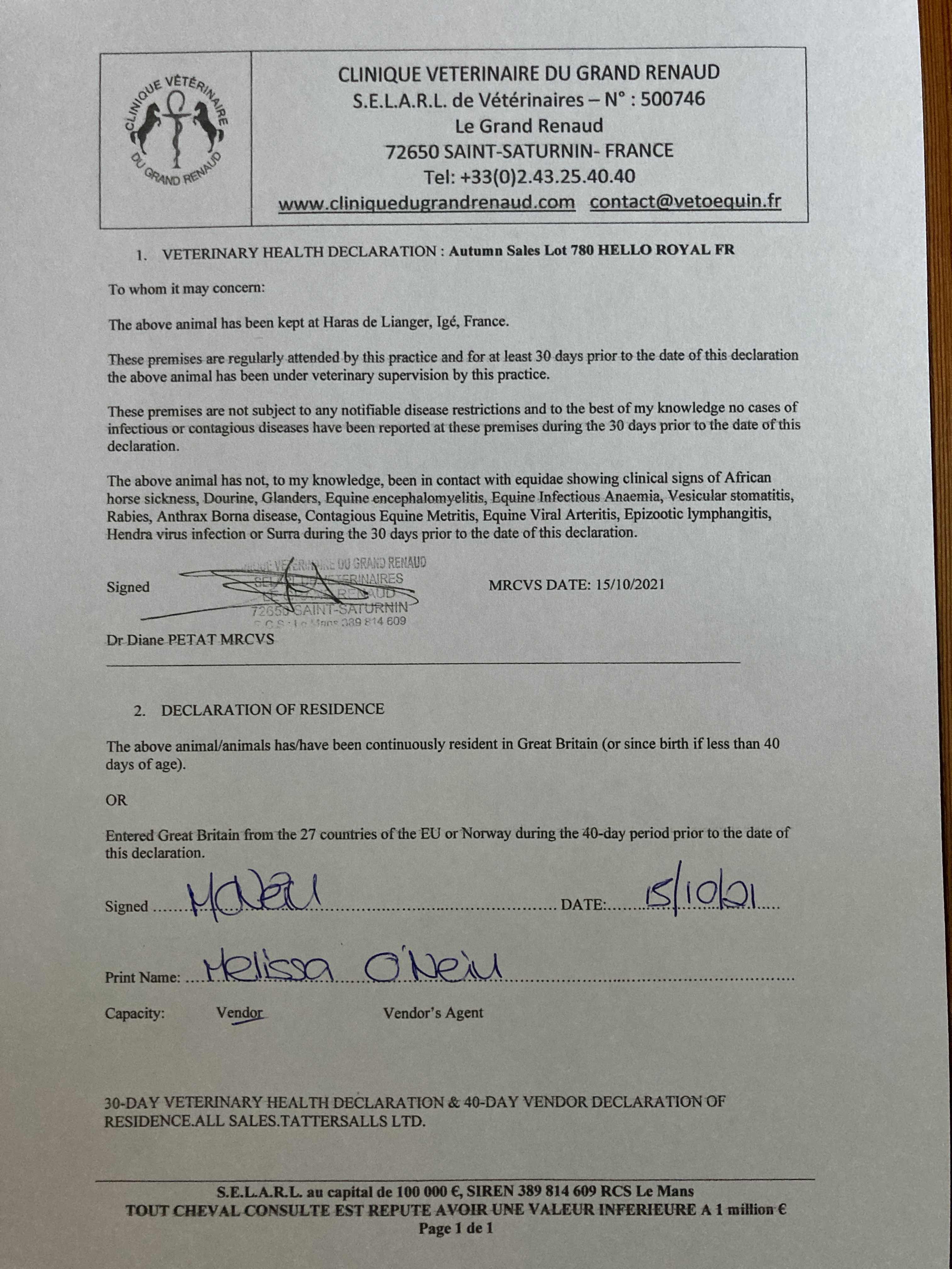 Consignor: Eoghan J. O'Neill, France