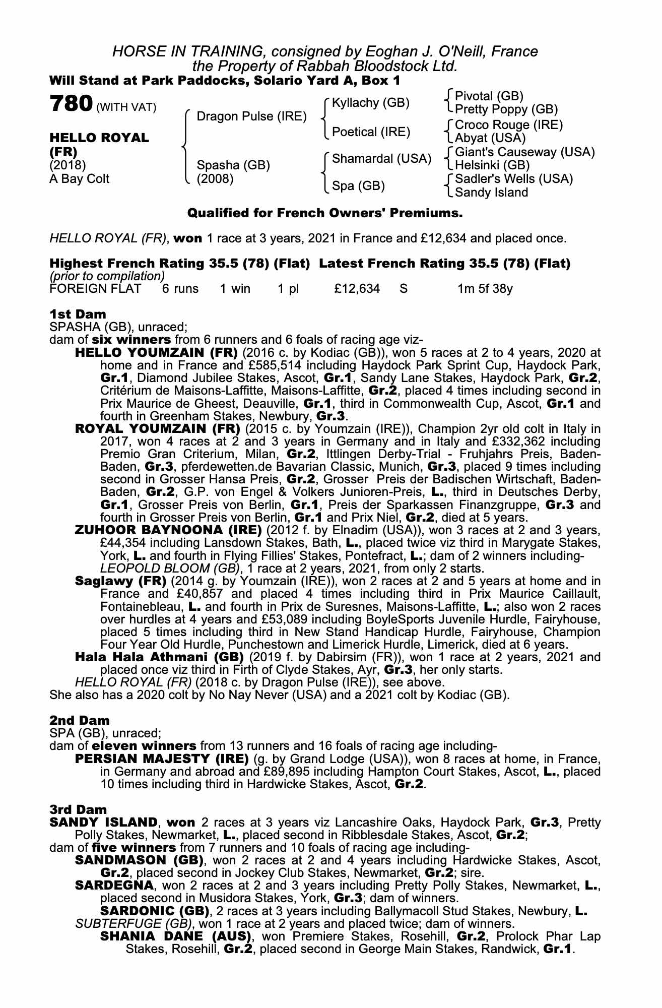 Online Sale - 11th December 2025 lot 133 A Half-Share in Hello Youmzain (FR) (H. by Kodiac (GB)), a Gentleman=>Vendor 20,000 gns