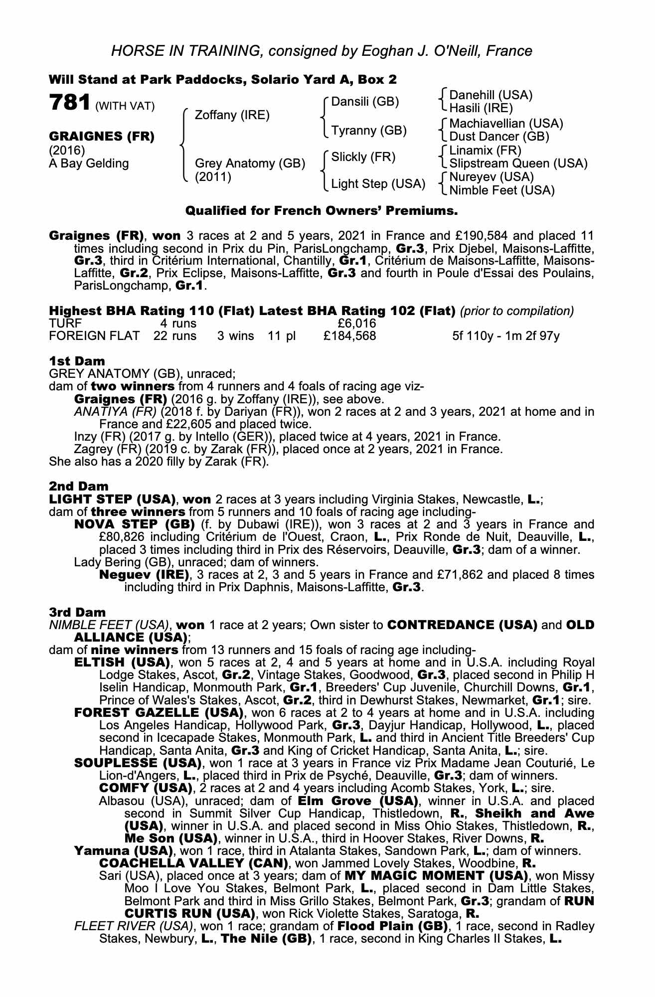 July Sale 2022 lot 271C Anatiya (FR) (F. by Dariyan (FR)), The Castlebridge Consignment=>Vendor 120,000 gns