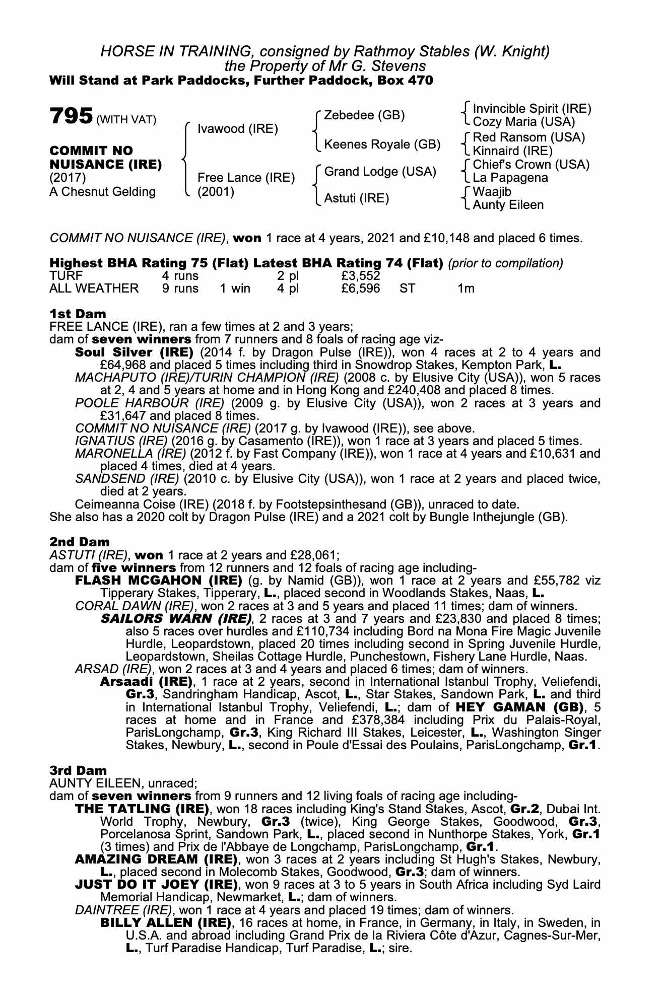 Consignor: Rathmoy Stables (W. Knight)