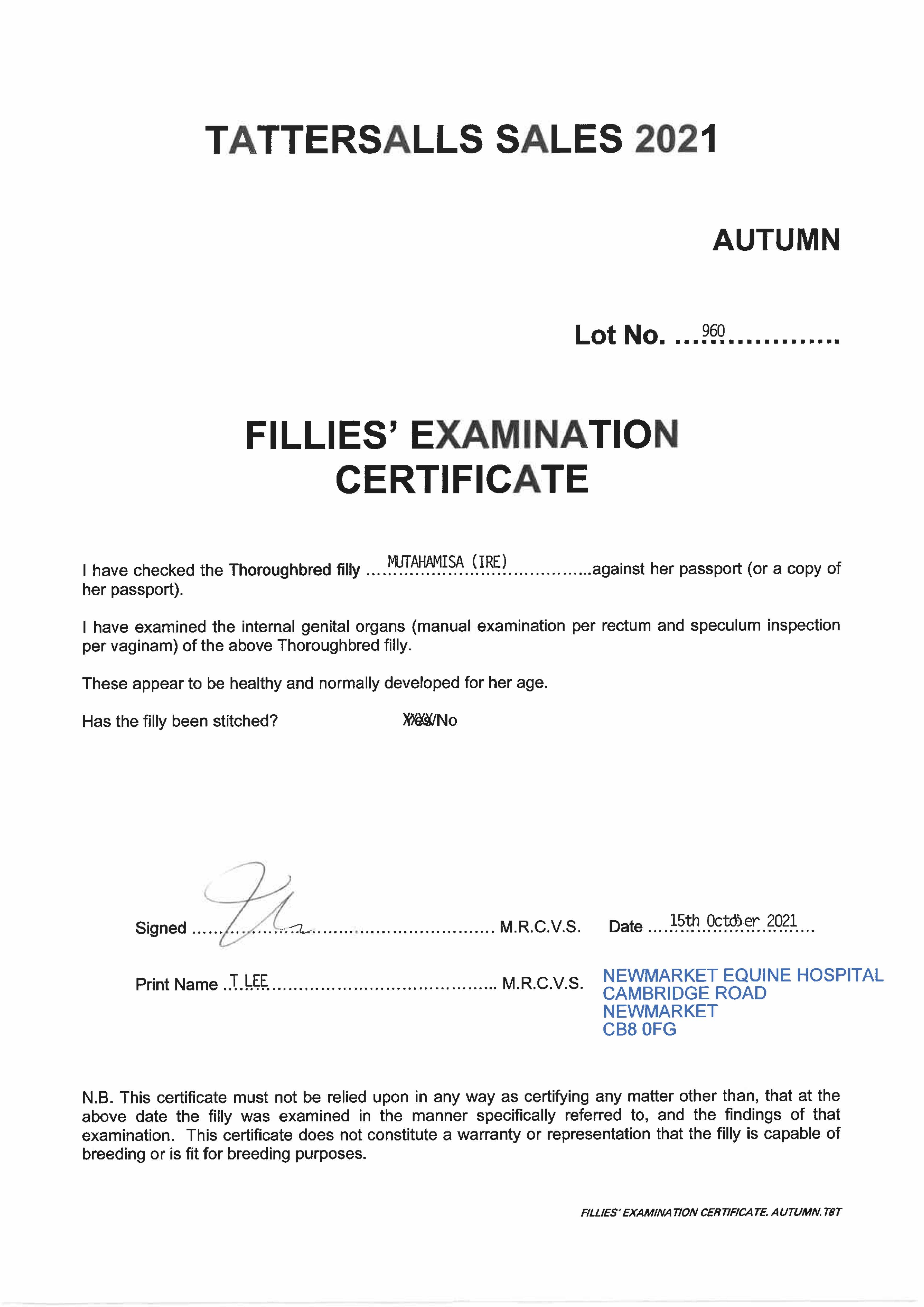 Autumn Horses In Training Sale 2025 lot 601 Pergola (IRE) (F. by Wootton Bassett (GB)), Somerville Lodge Ltd. (W. Haggas), Agent=>HMH Management 65,000 gns