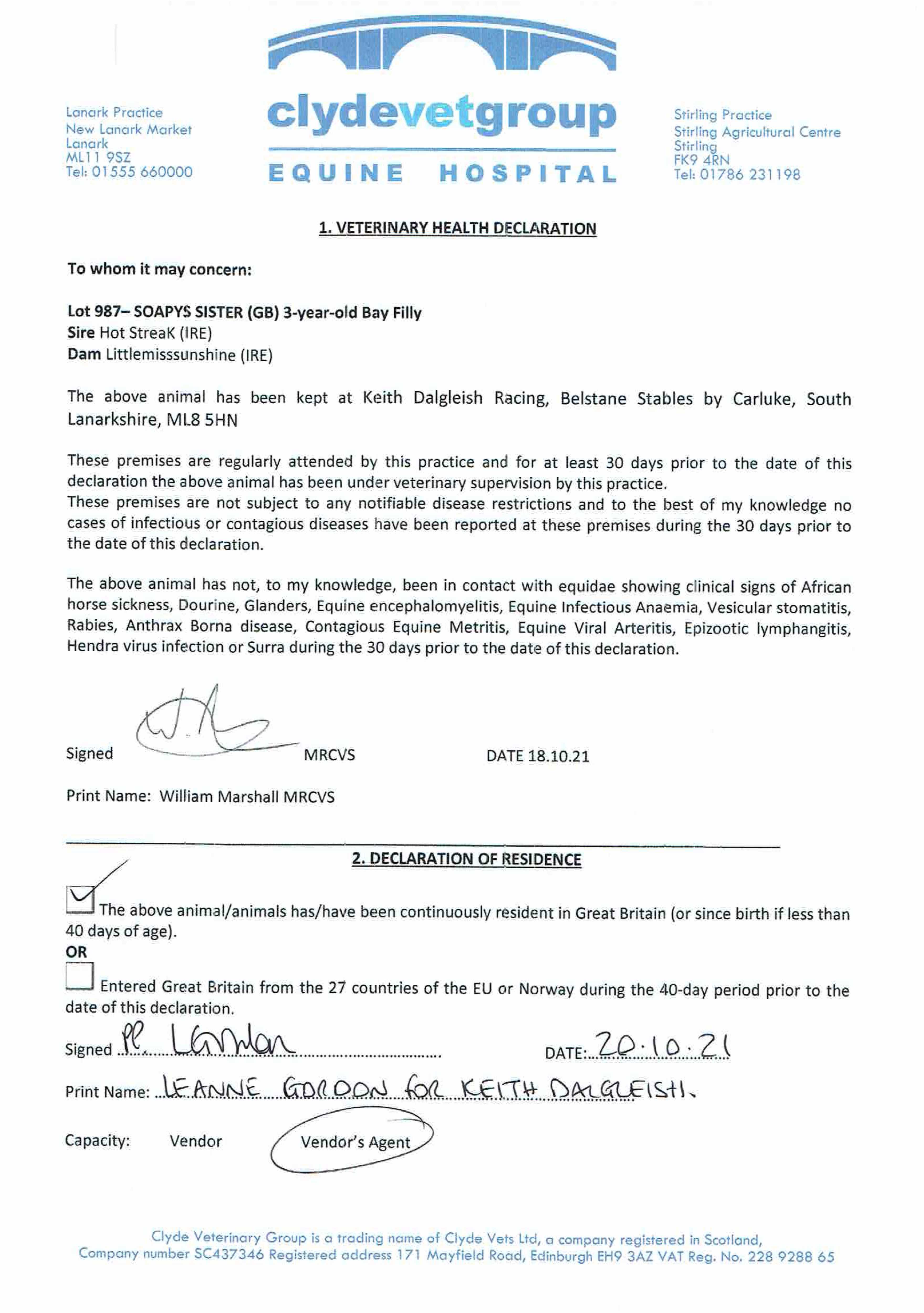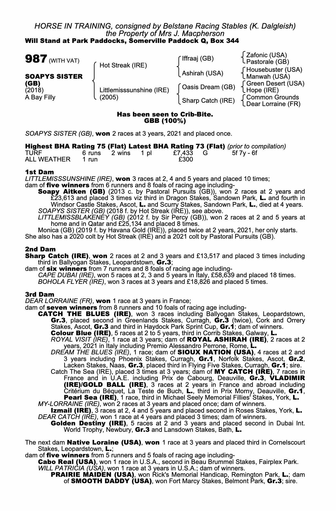 Consignor: Belstane Racing Stables (K. Dalgleish)