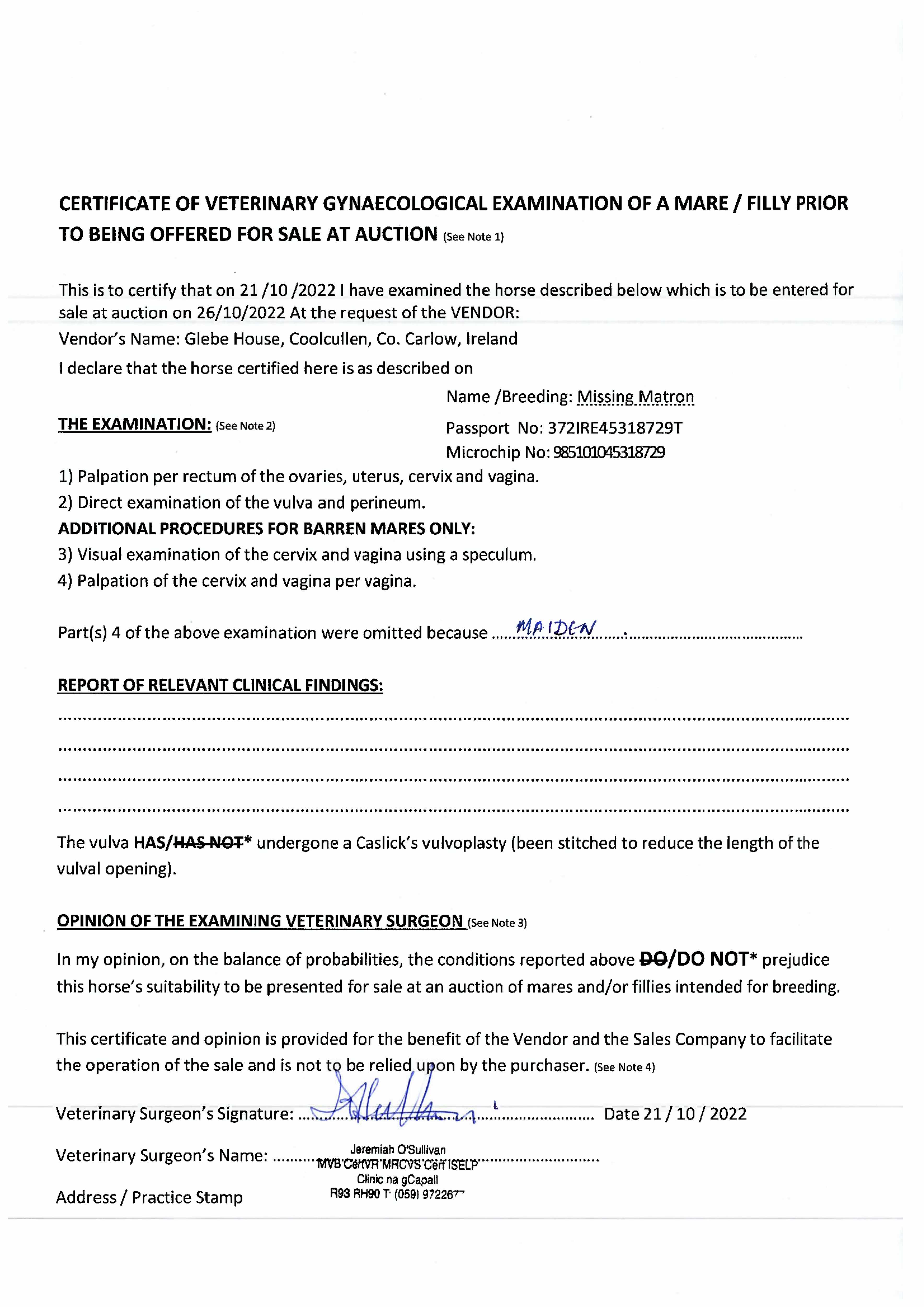 Consignor: Glebe House Stables, Ireland (J. S. Bolger)