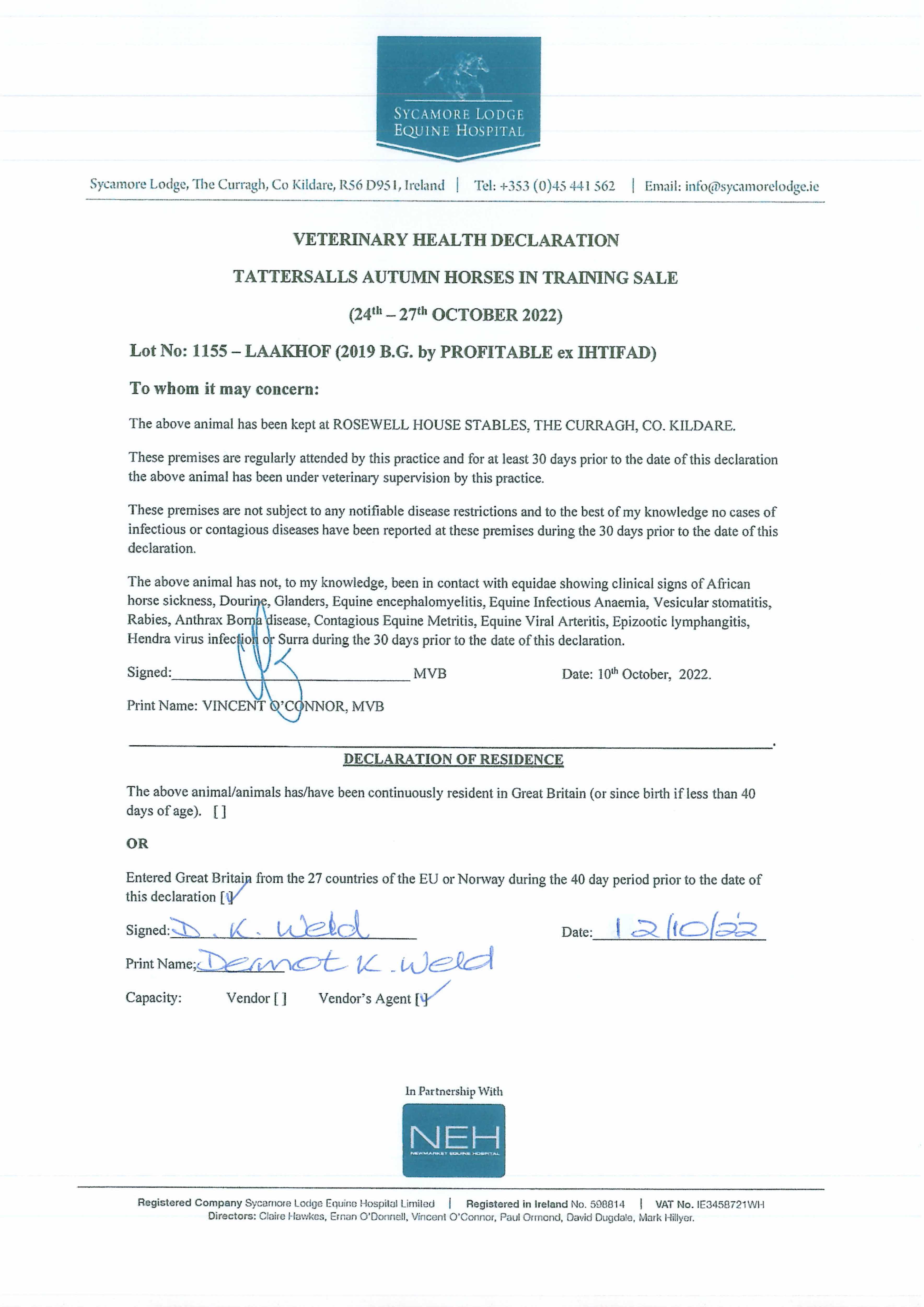 Consignor: Rosewell House Stables, Ireland (D. K. Weld)
