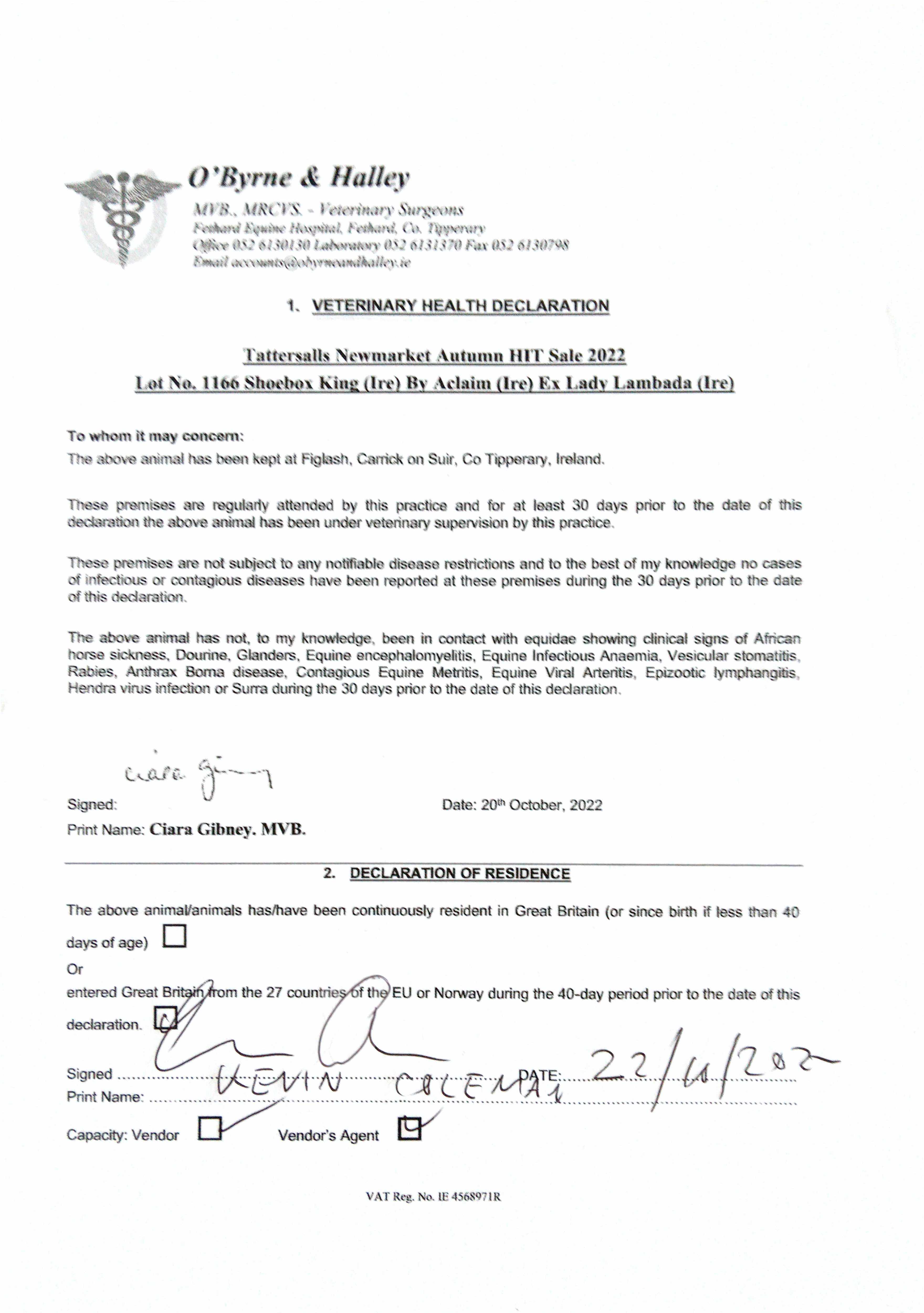 Online Sale - 29th June 2021 lot 52, Slievebrook House Stud, Ireland=>Vendor 70,000 gns
