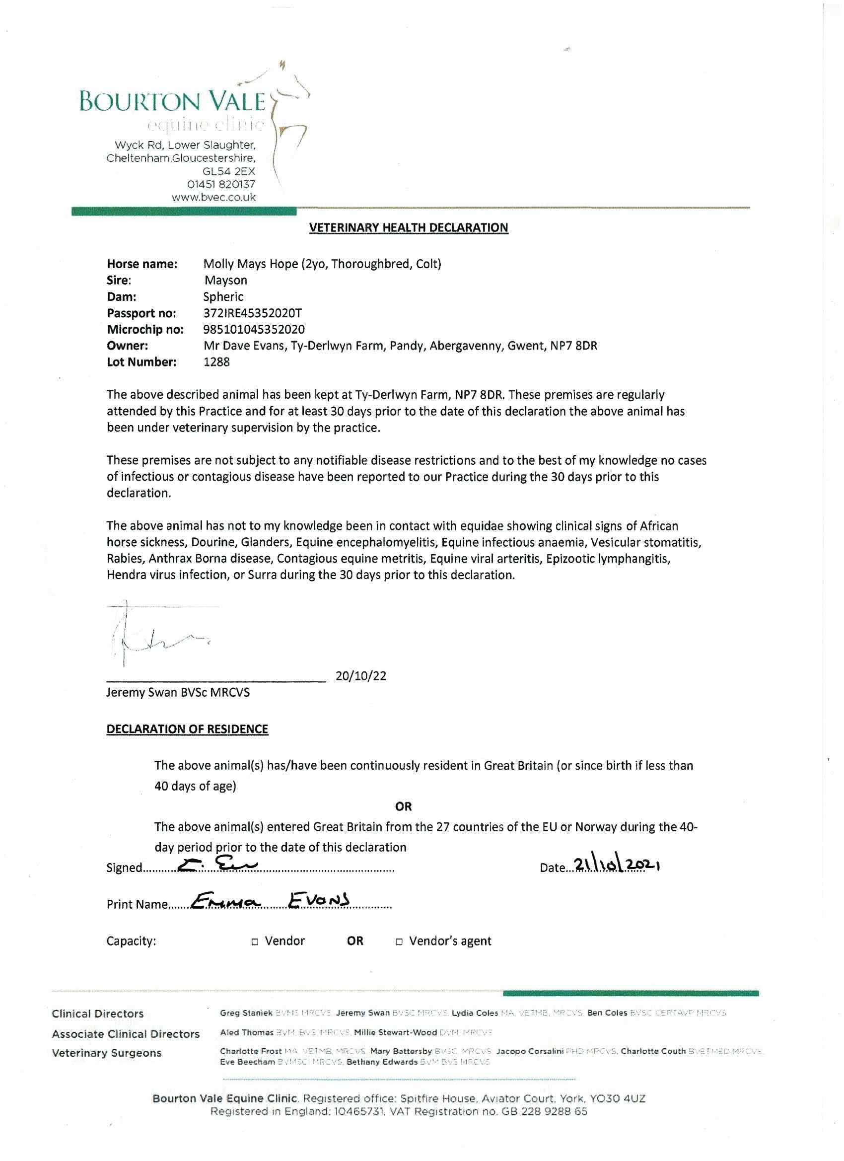 Consignor: Ty-Derlwyn Farm (P. Evans)
