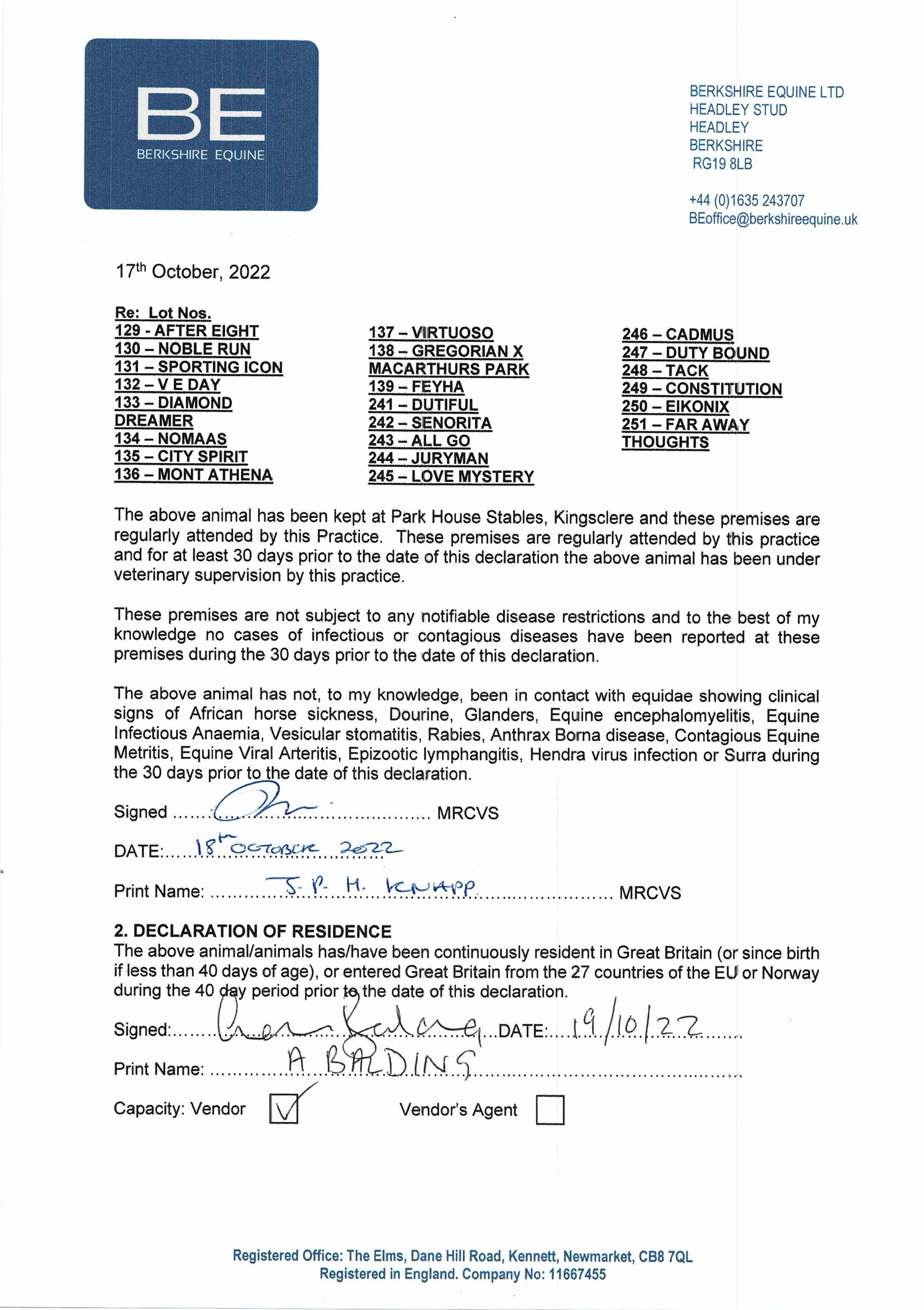 Consignor: Park House Stables (A. Balding)
