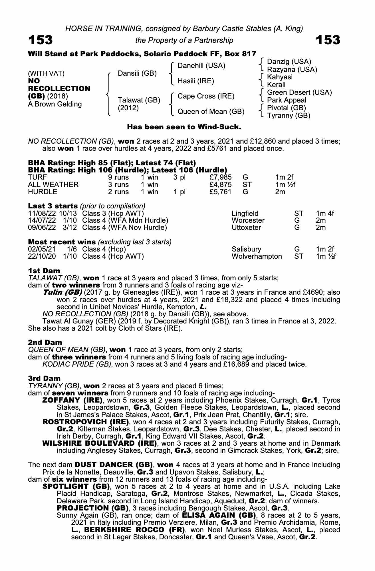 Consignor: Barbury Castle Stables (A. King)