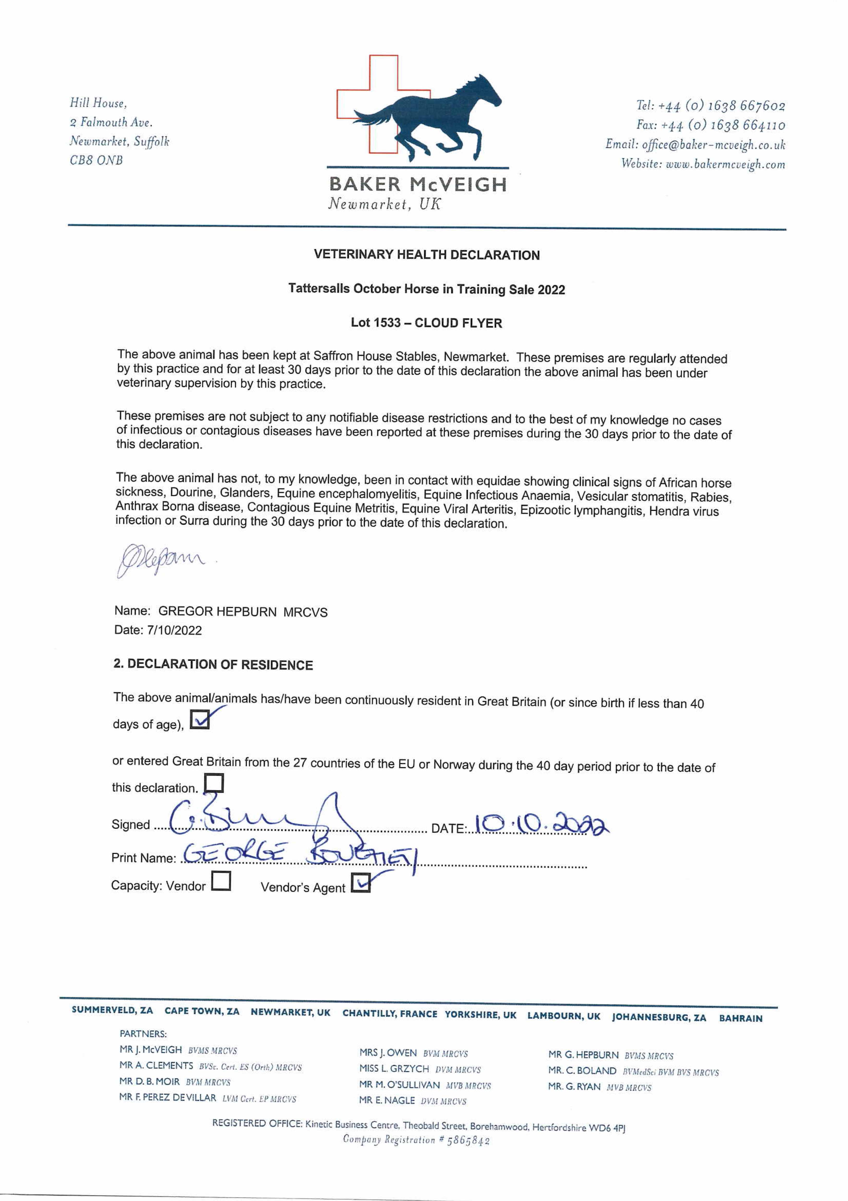 Consignor: Saffron House Stables (G. Boughey)