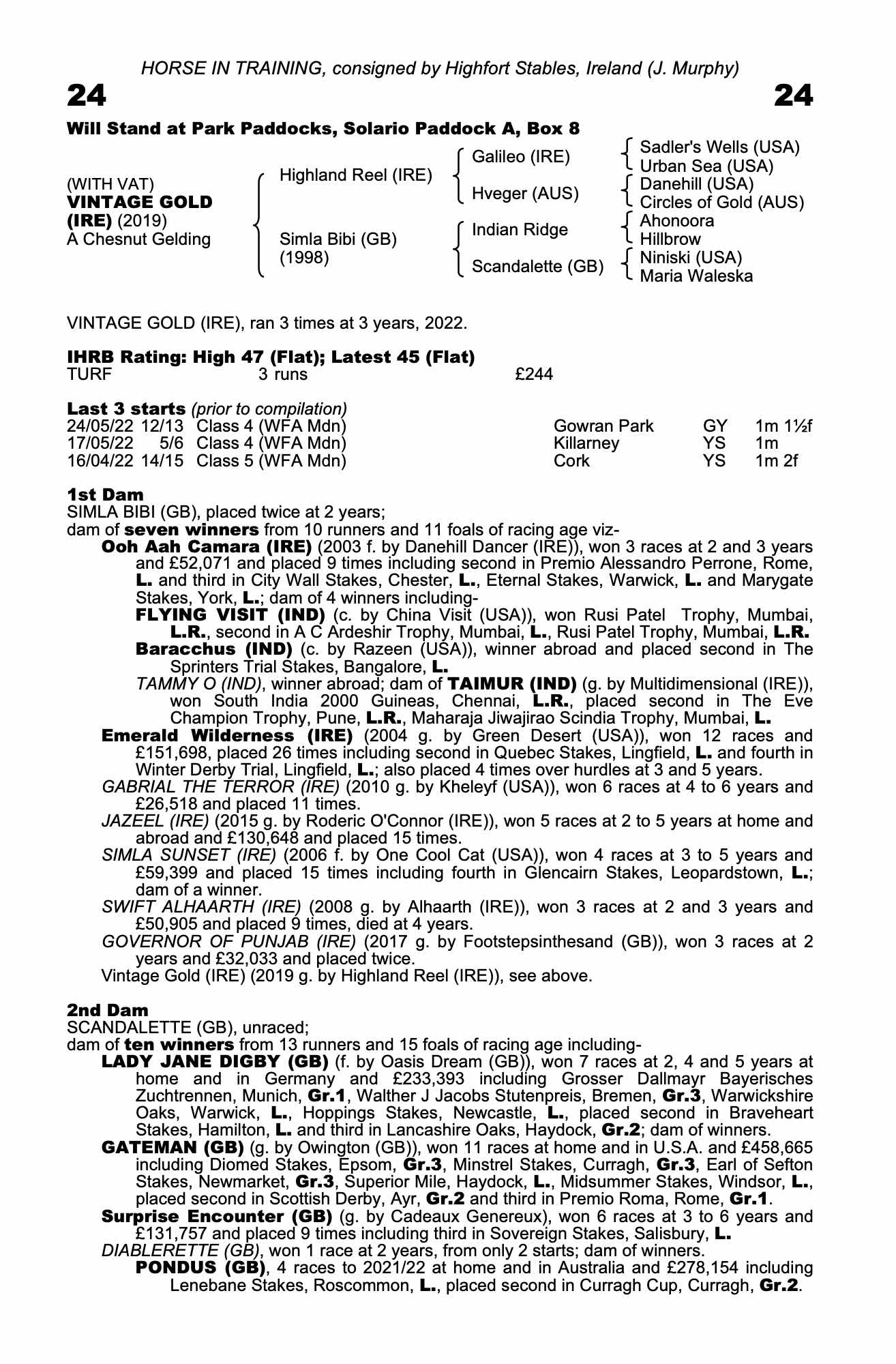 Consignor: Highfort Stables, Ireland (J. Murphy)