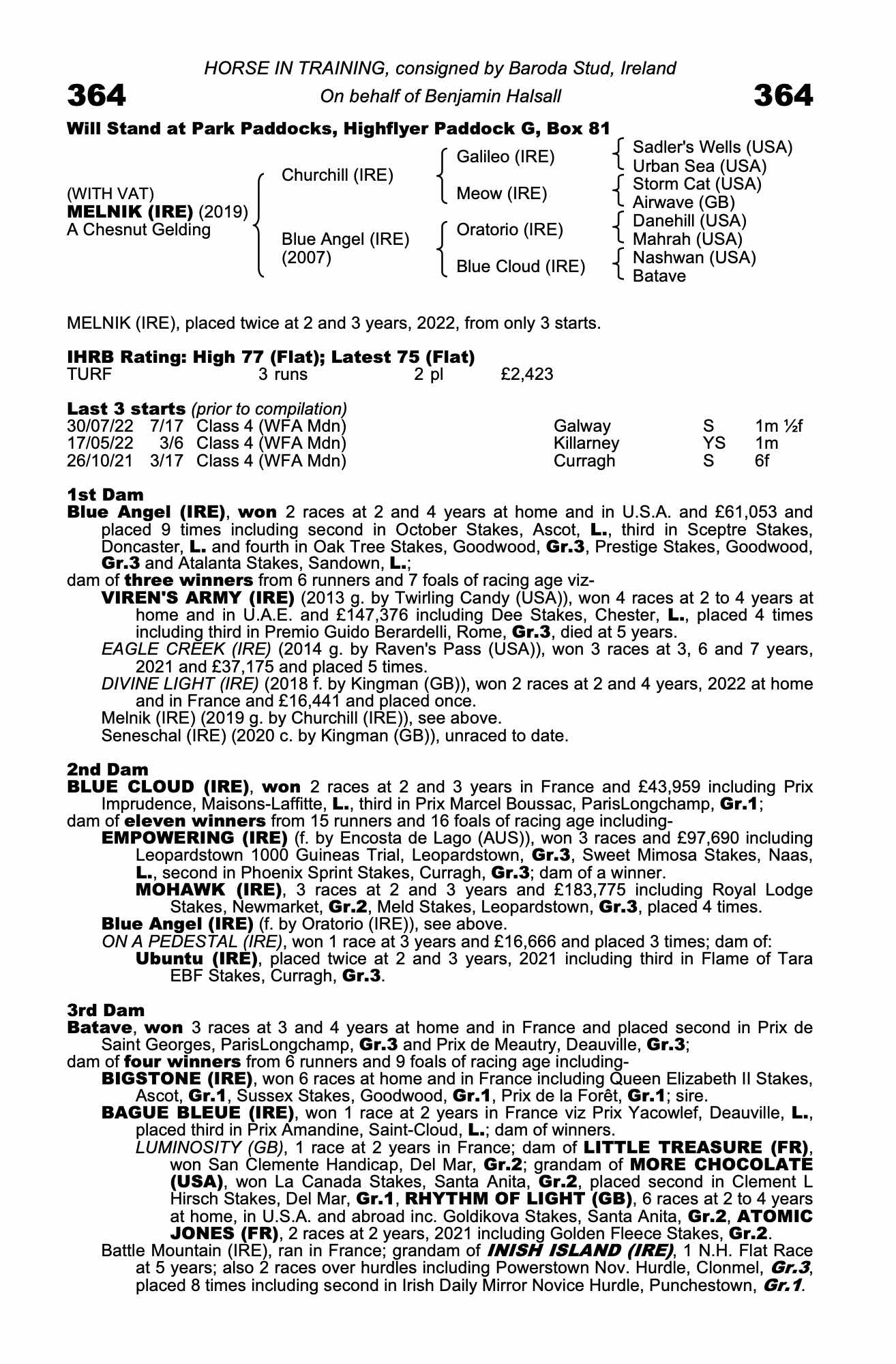 Consignor: Baroda Stud, Ireland