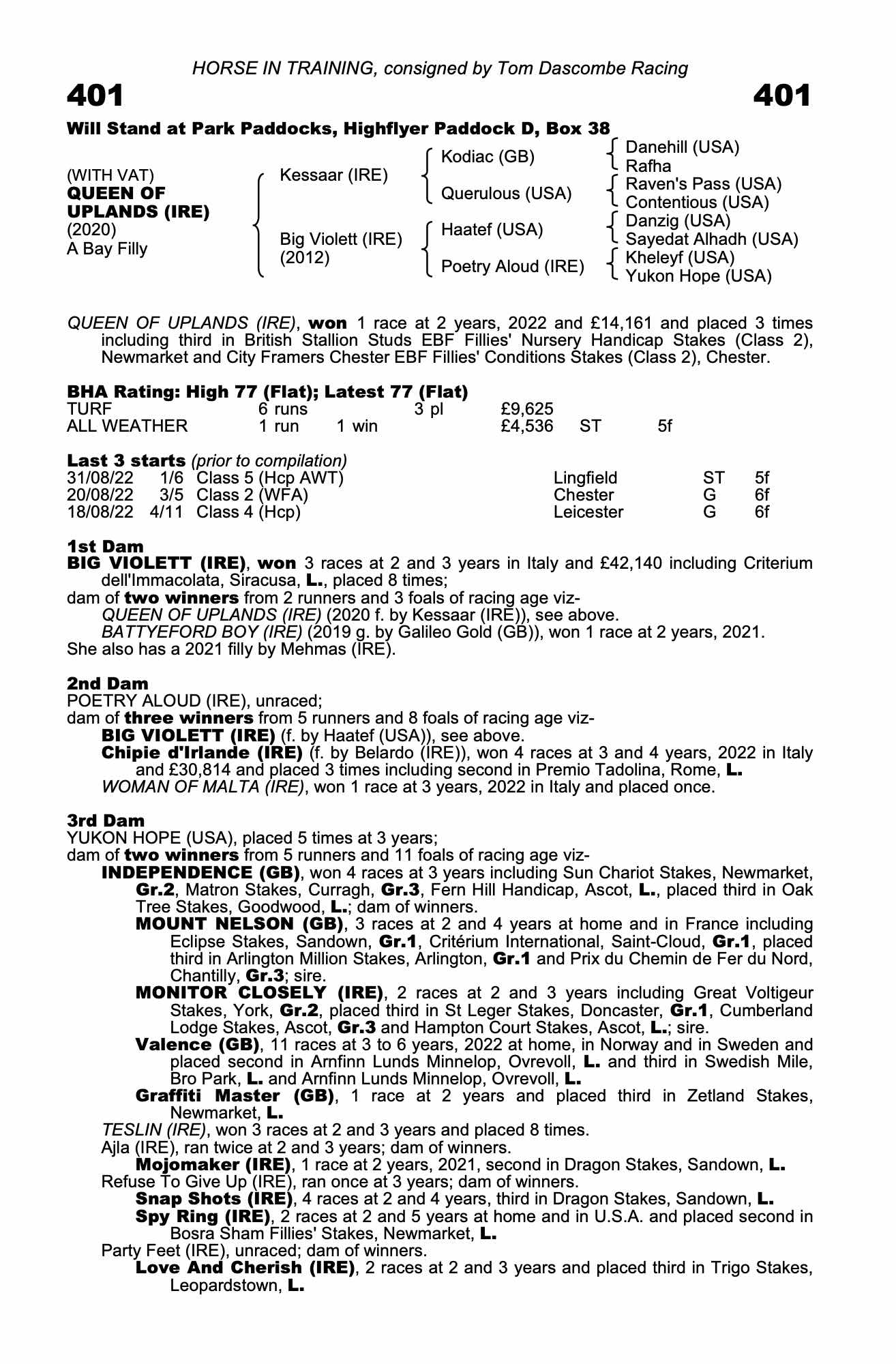 Craven Breeze Up Sale 2022 lot 108, Hyde Park Stud, Ireland=>SackvilleDonald / Tom Dascombe30,000 gns