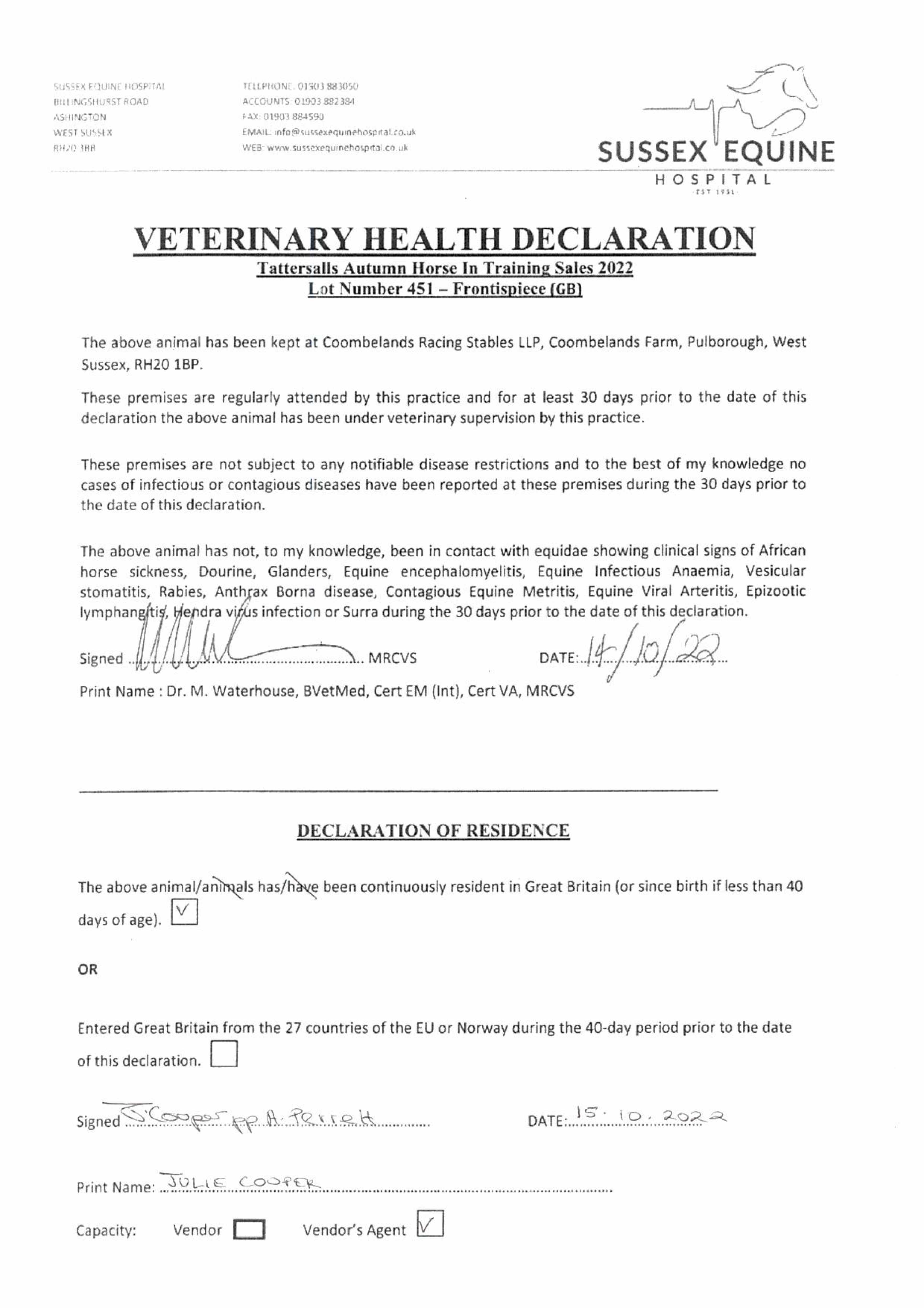 Consignor: Coombelands Racing Stables (Mrs A. Perrett)
