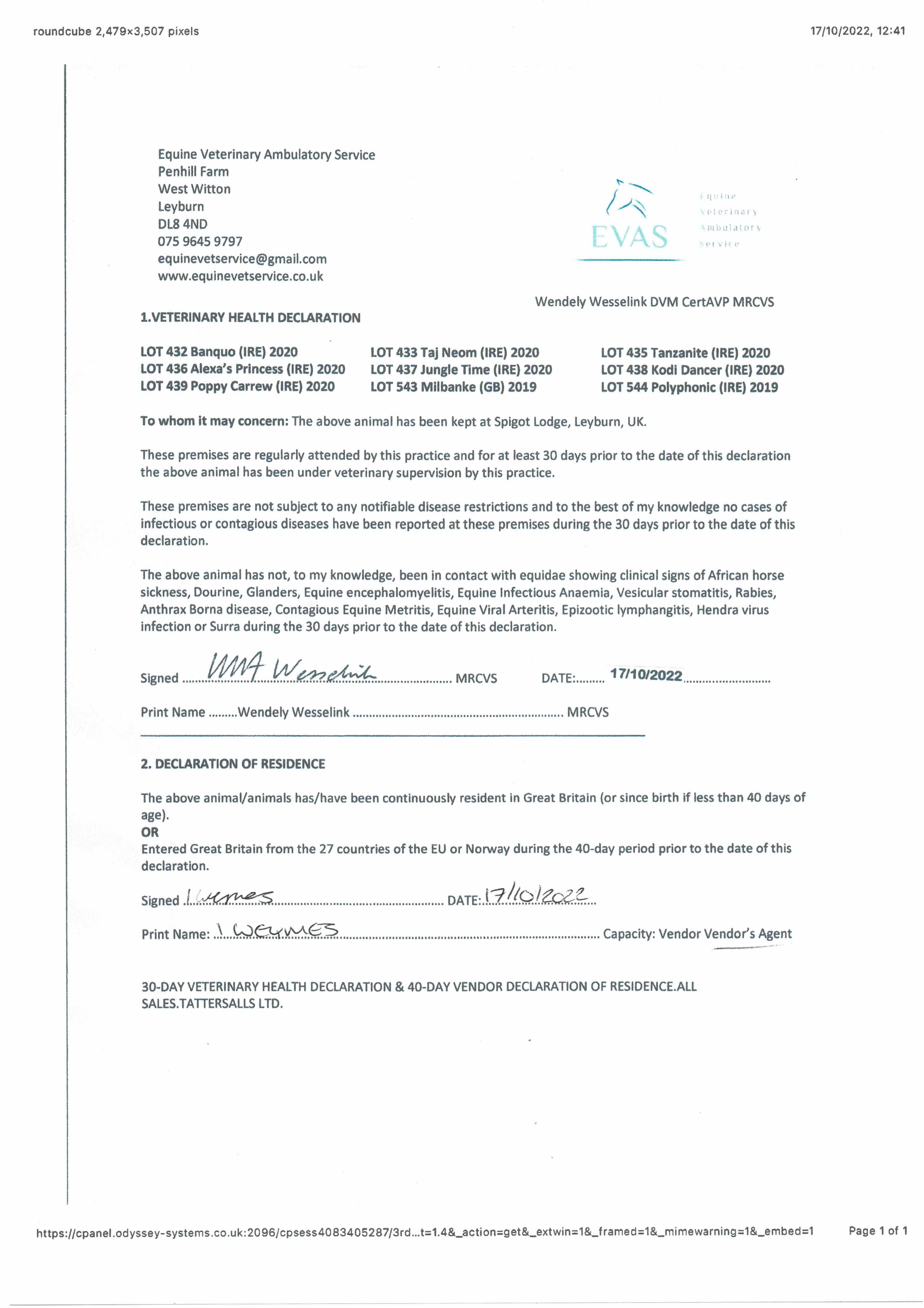 December Foal Sale 2023 lot 616 F. by Night of Thunder (IRE) 2023, The National Stud Ltd.=>Lot Not Sold 72,000 gns