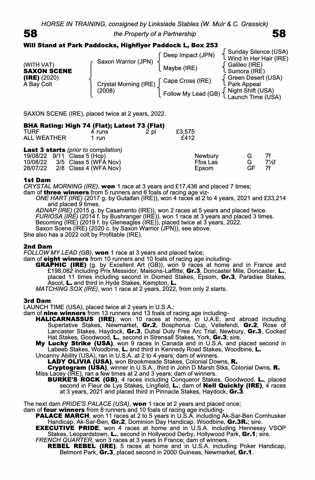 Consignor: Linkslade Stables (W. Muir & C. Grassick)