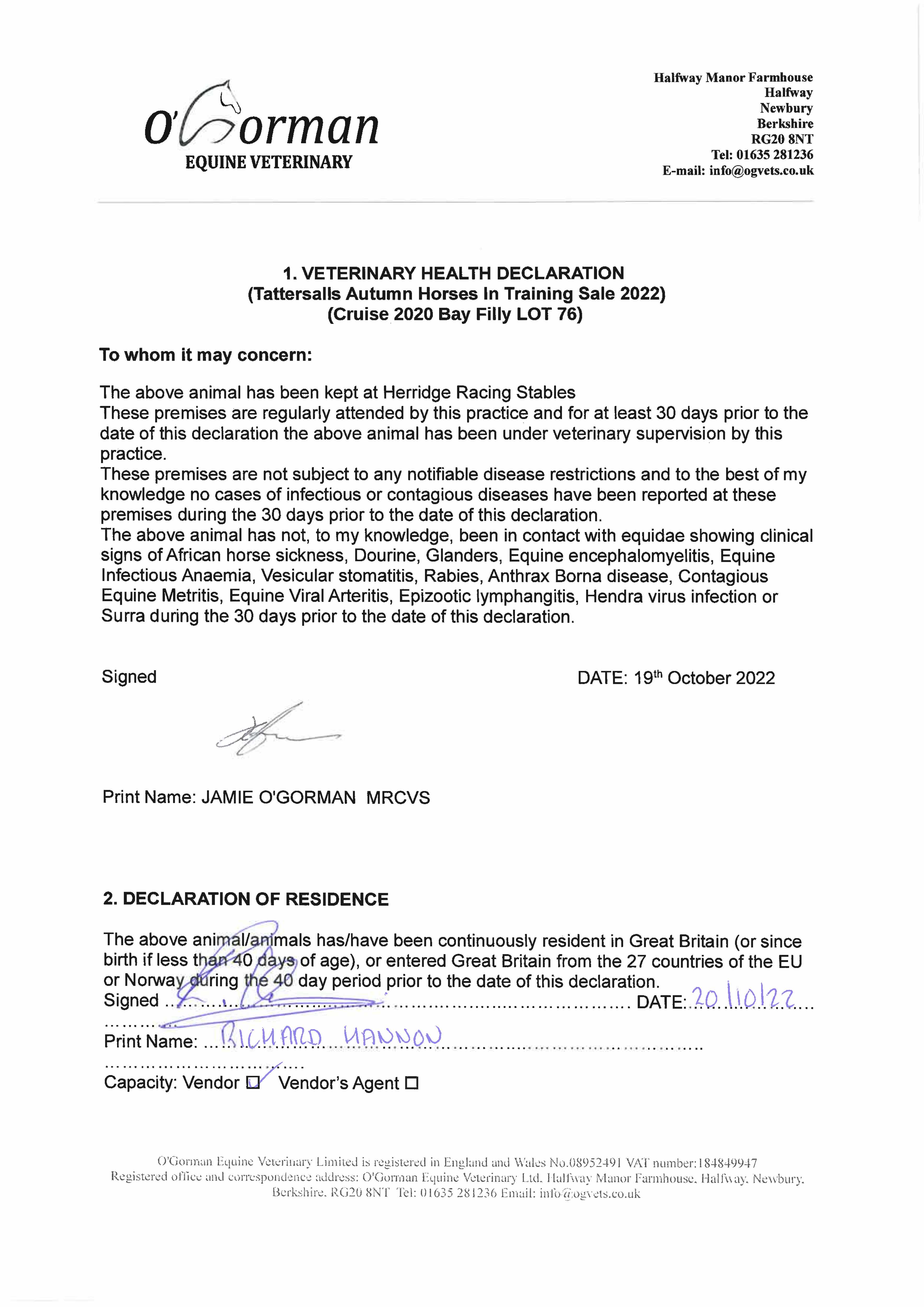 Consignor: Jamie Railton (Agent)