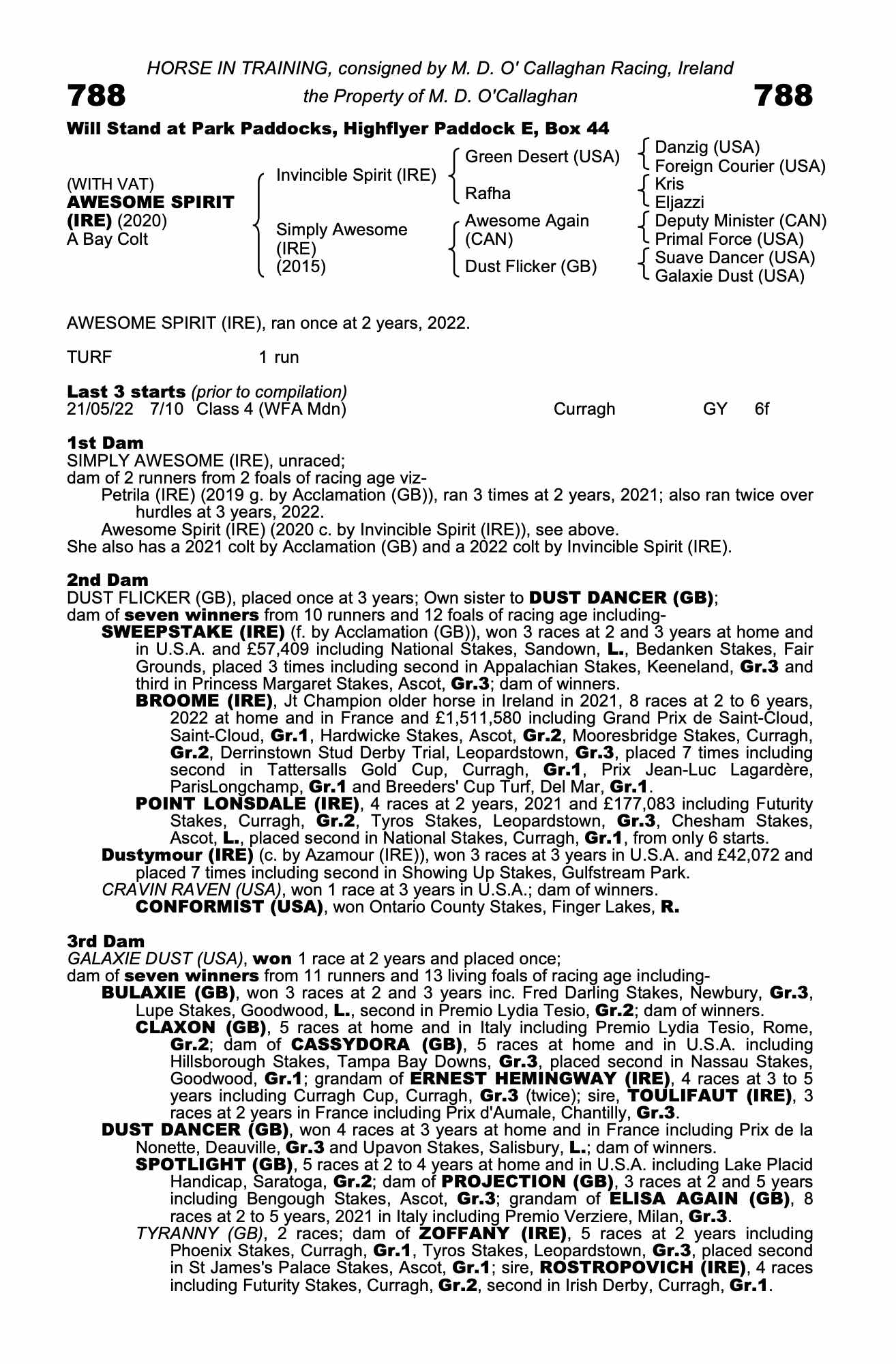 Consignor: M. D. O' Callaghan Racing, Ireland