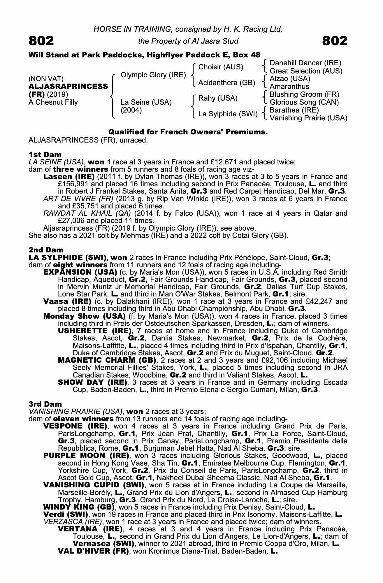 August Sale 2022 lot 359 Aljasra United (FR) (G.), H. K. Racing Ltd.=>M Hosford 1,000 gns