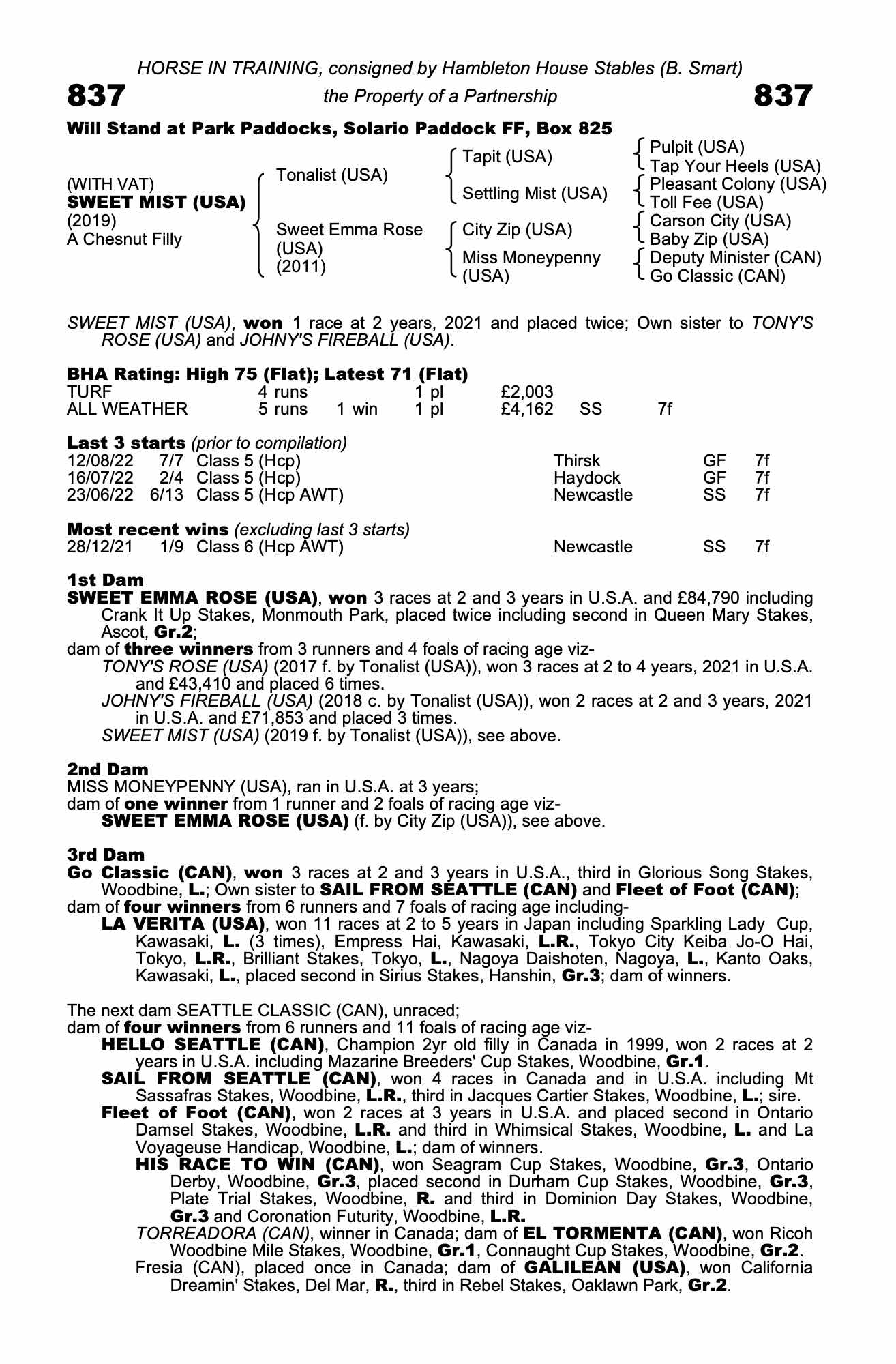 Online Sale - 11th May 2023 lot 9, The Castlebridge Consignment=>Sweet Mist Partners 11,000 gns