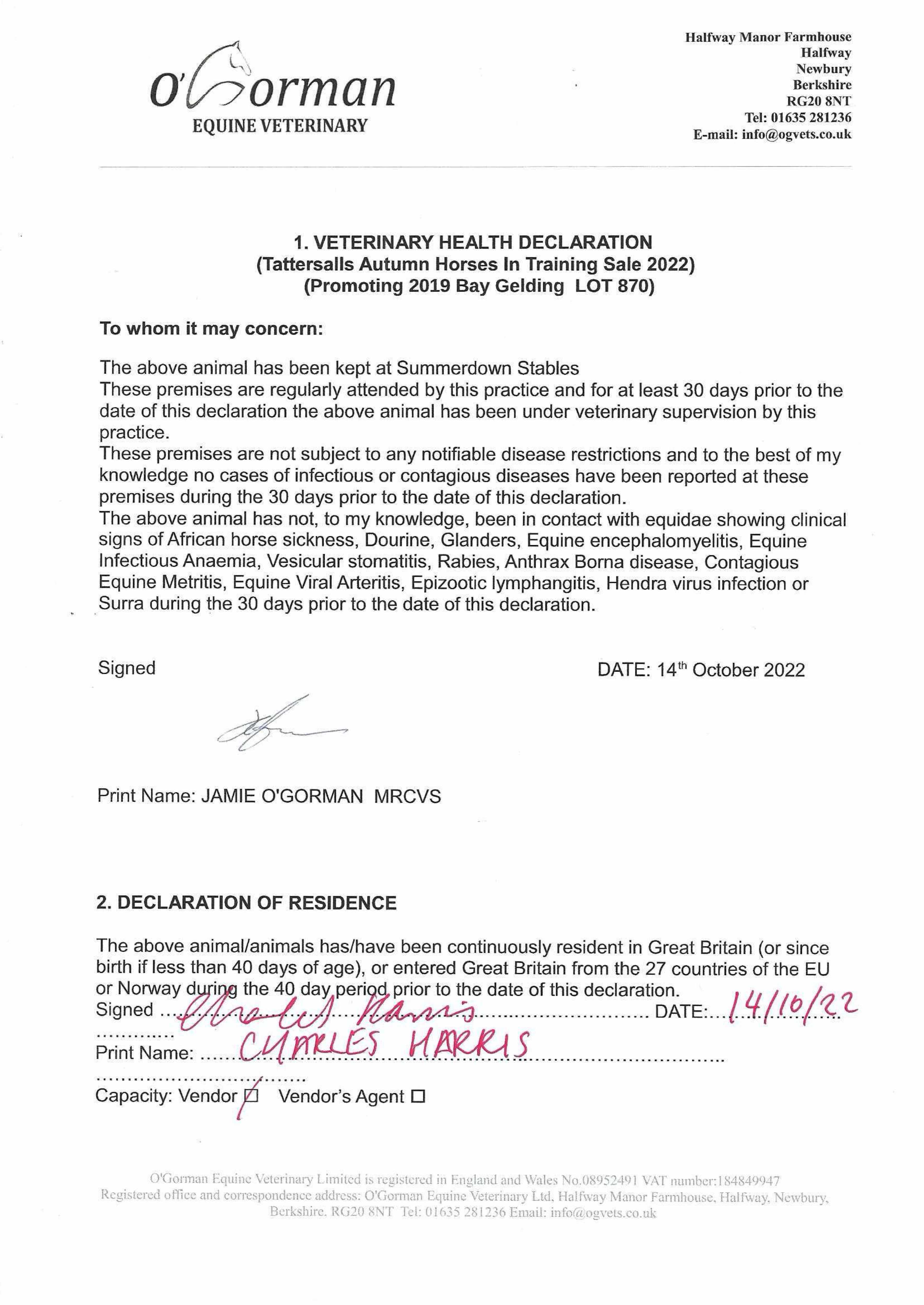 Consignor: Summerdown Stables (H. Morrison)