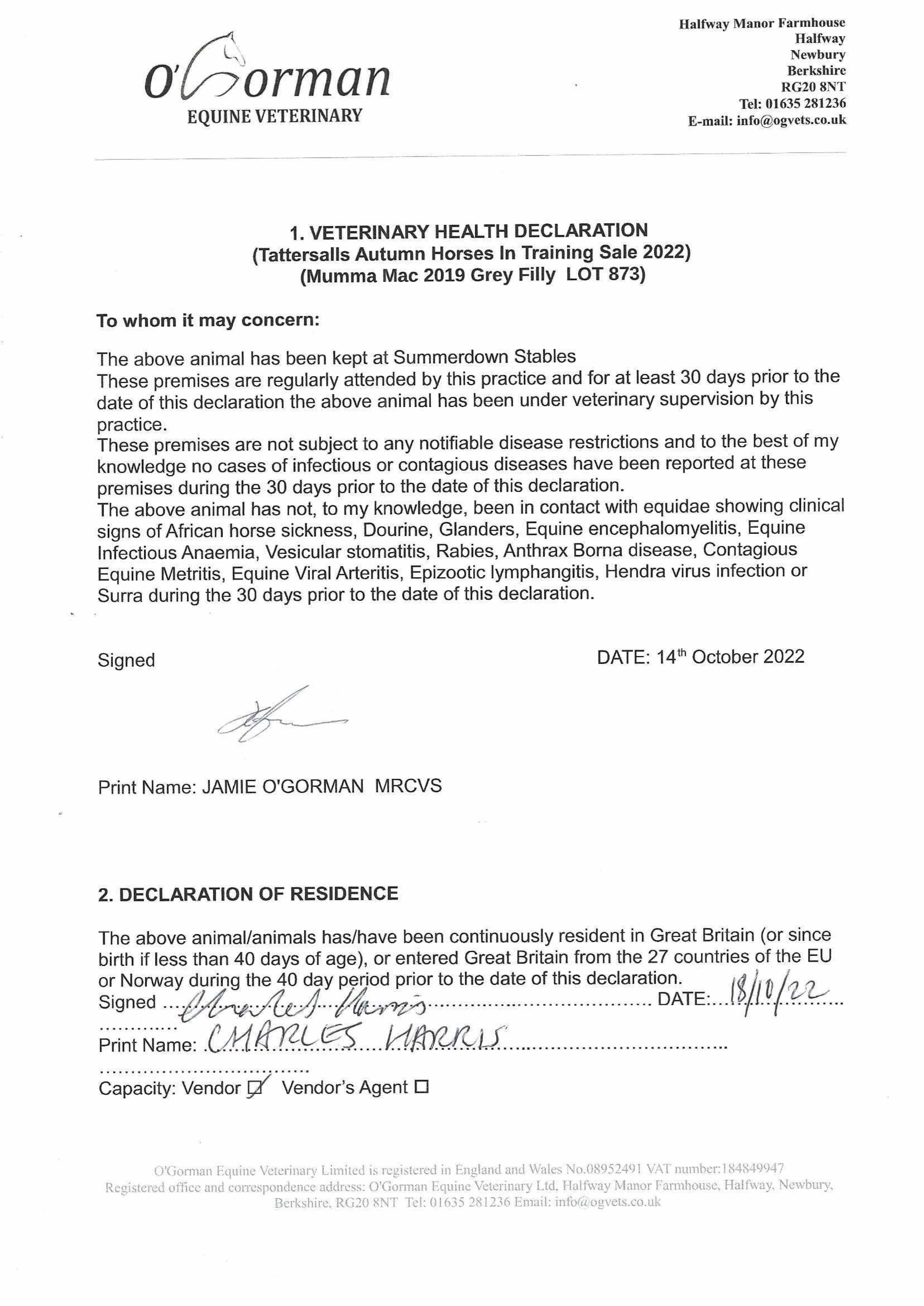Consignor: Summerdown Stables (H. Morrison)