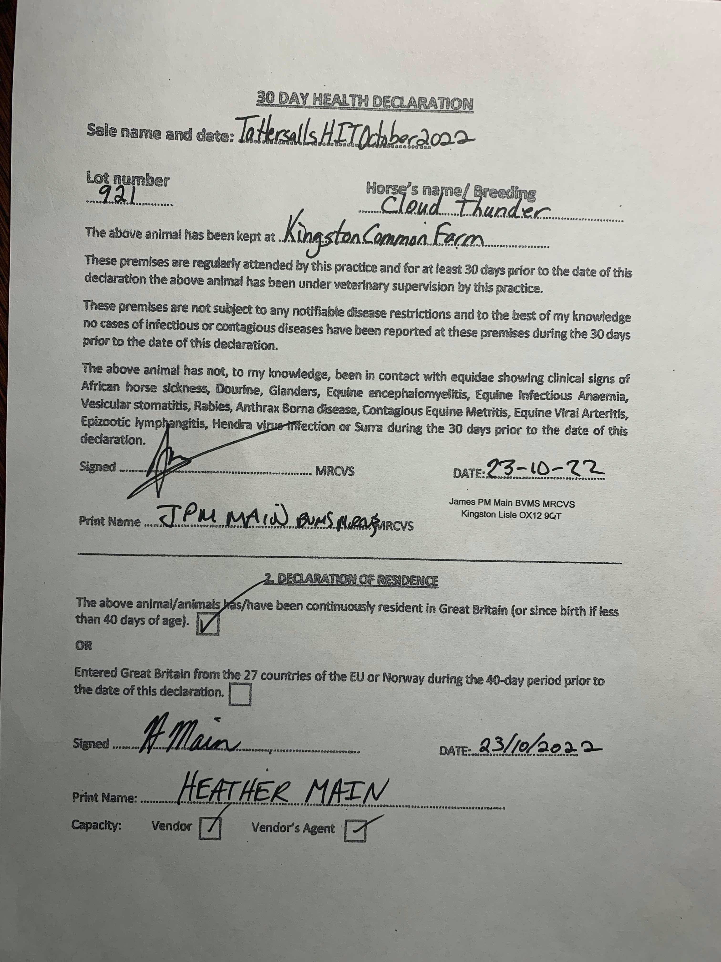 Consignor: Heather Main Racing