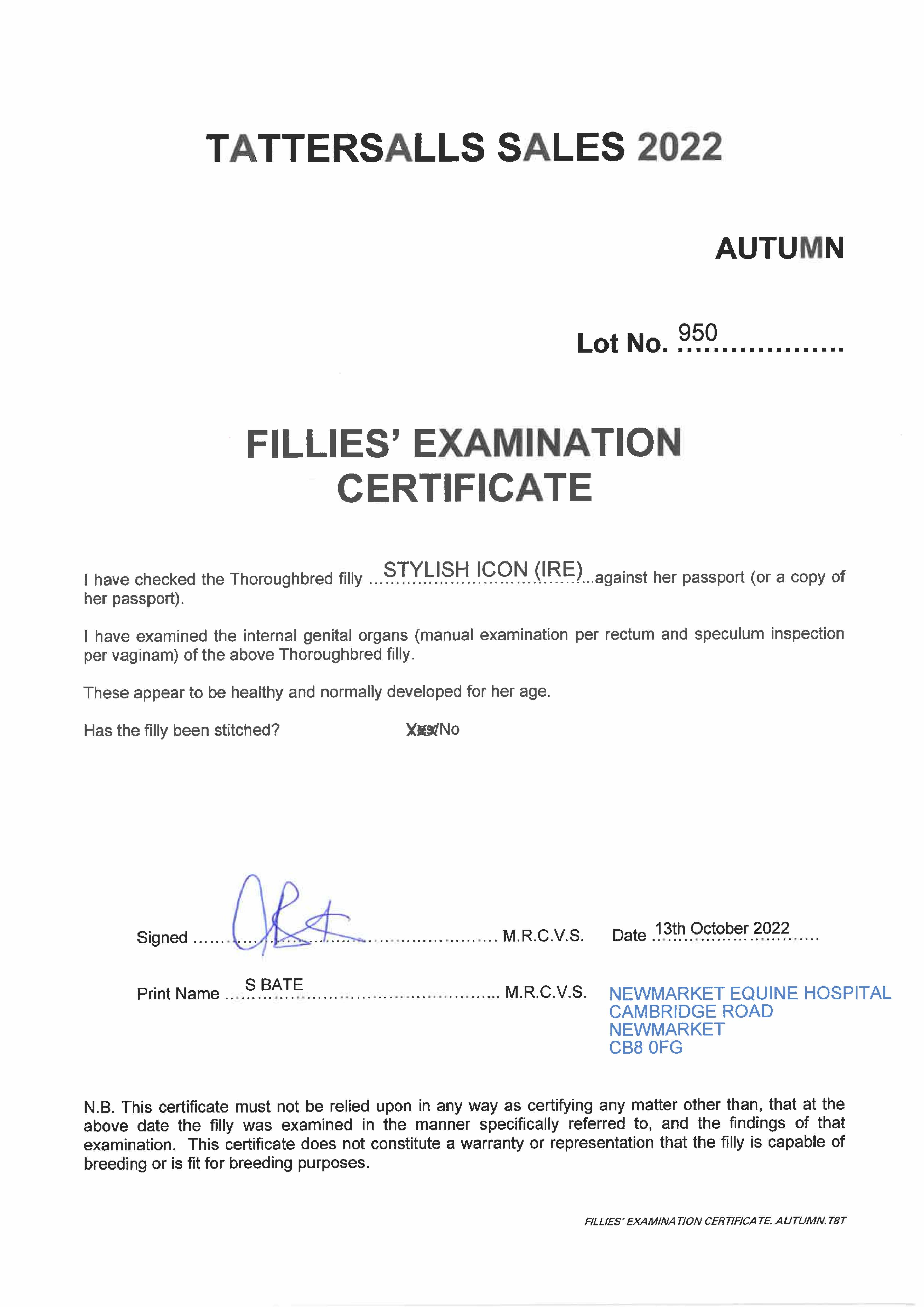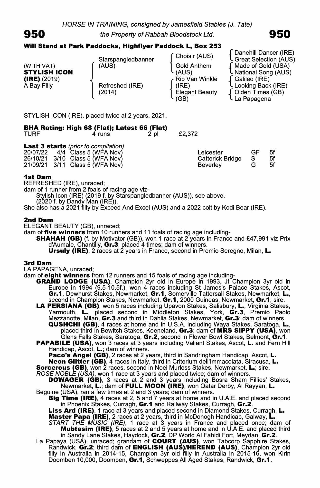 Consignor: Jamesfield Stables (J. Tate)