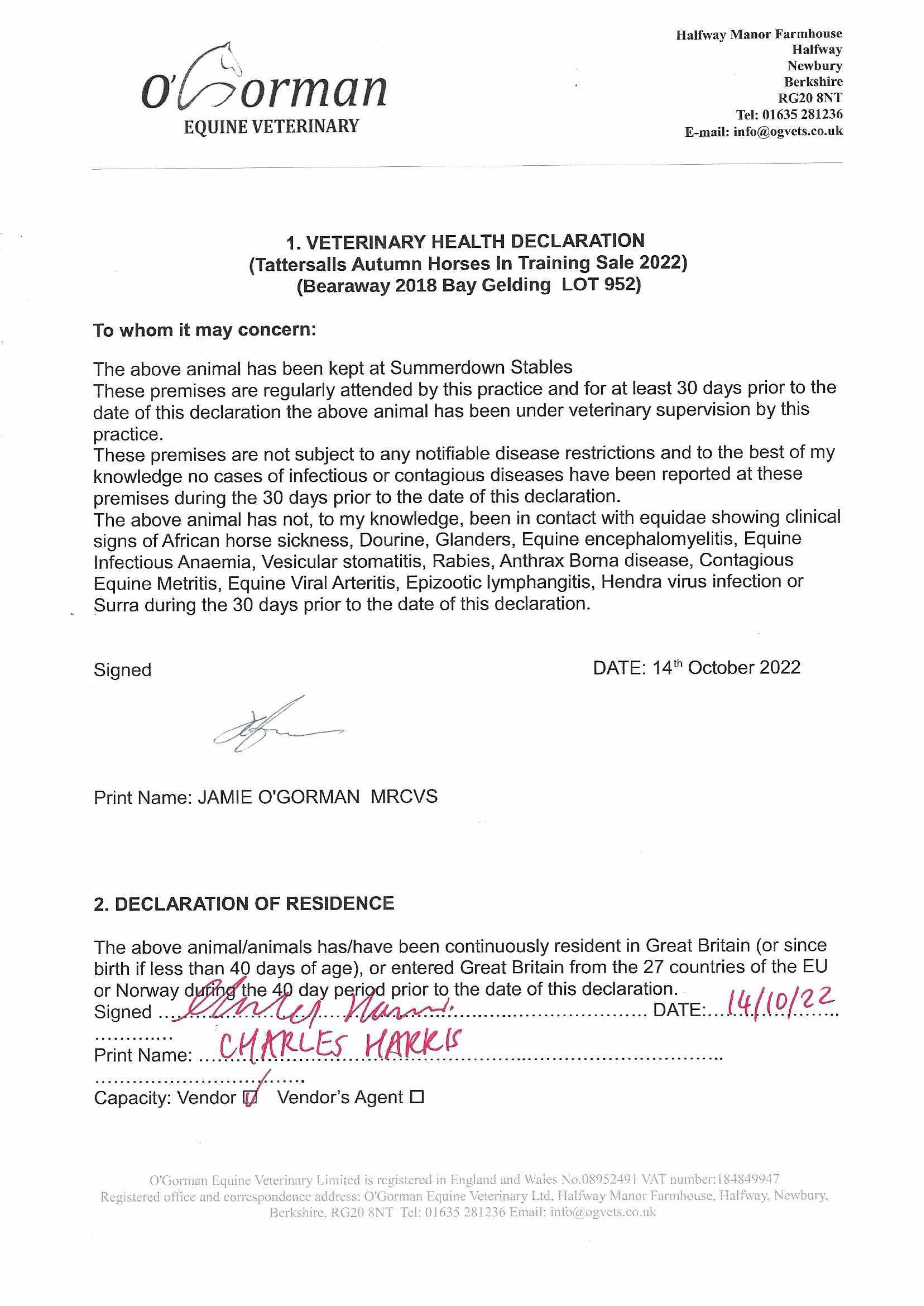 Consignor: Summerdown Stables (H. Morrison)