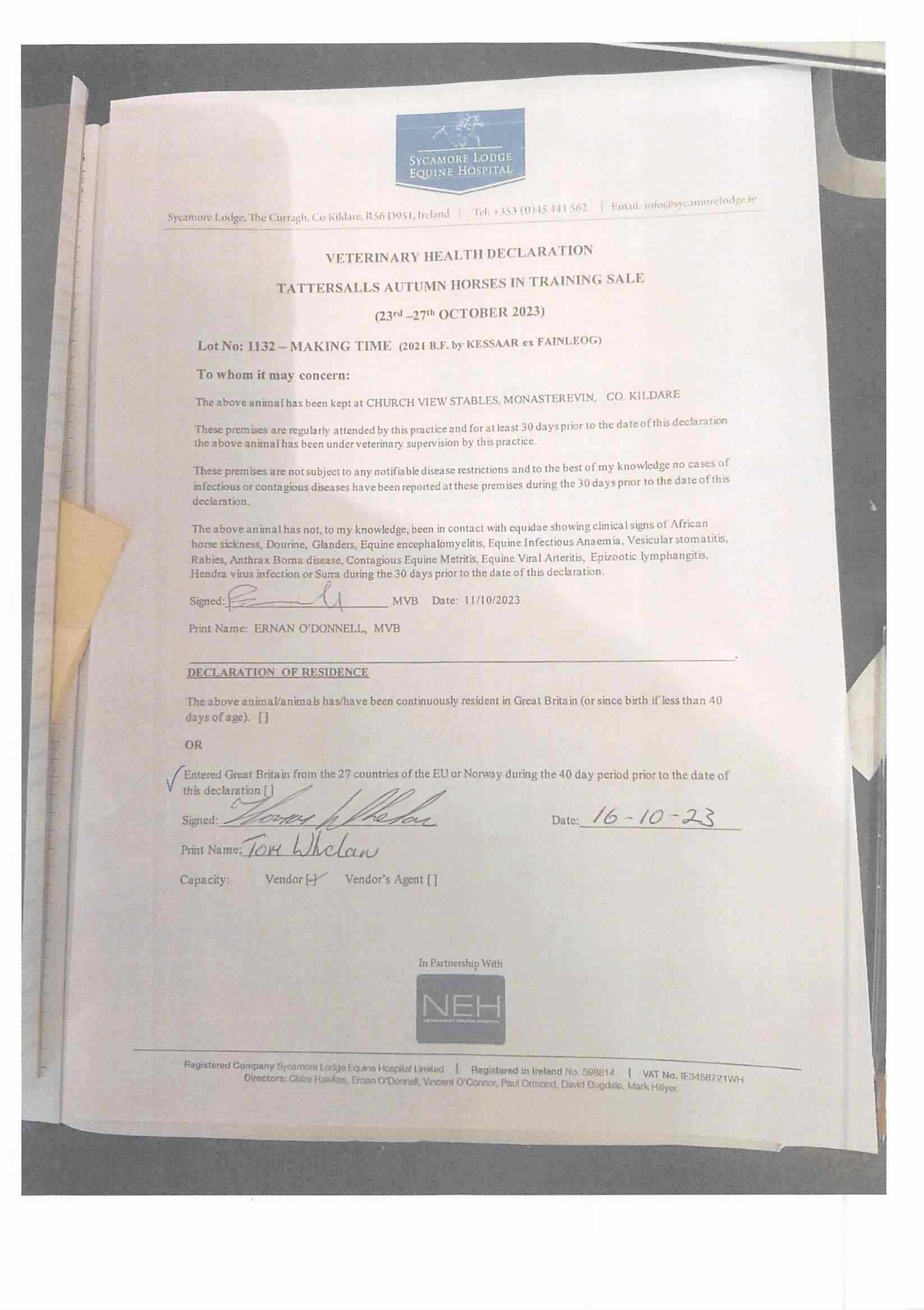 September Yearling Sale Part 1 2024 lot 1 F. by Inns of Court (IRE) 2023, Tally-Ho Stud=>Kevin Hart €3,000