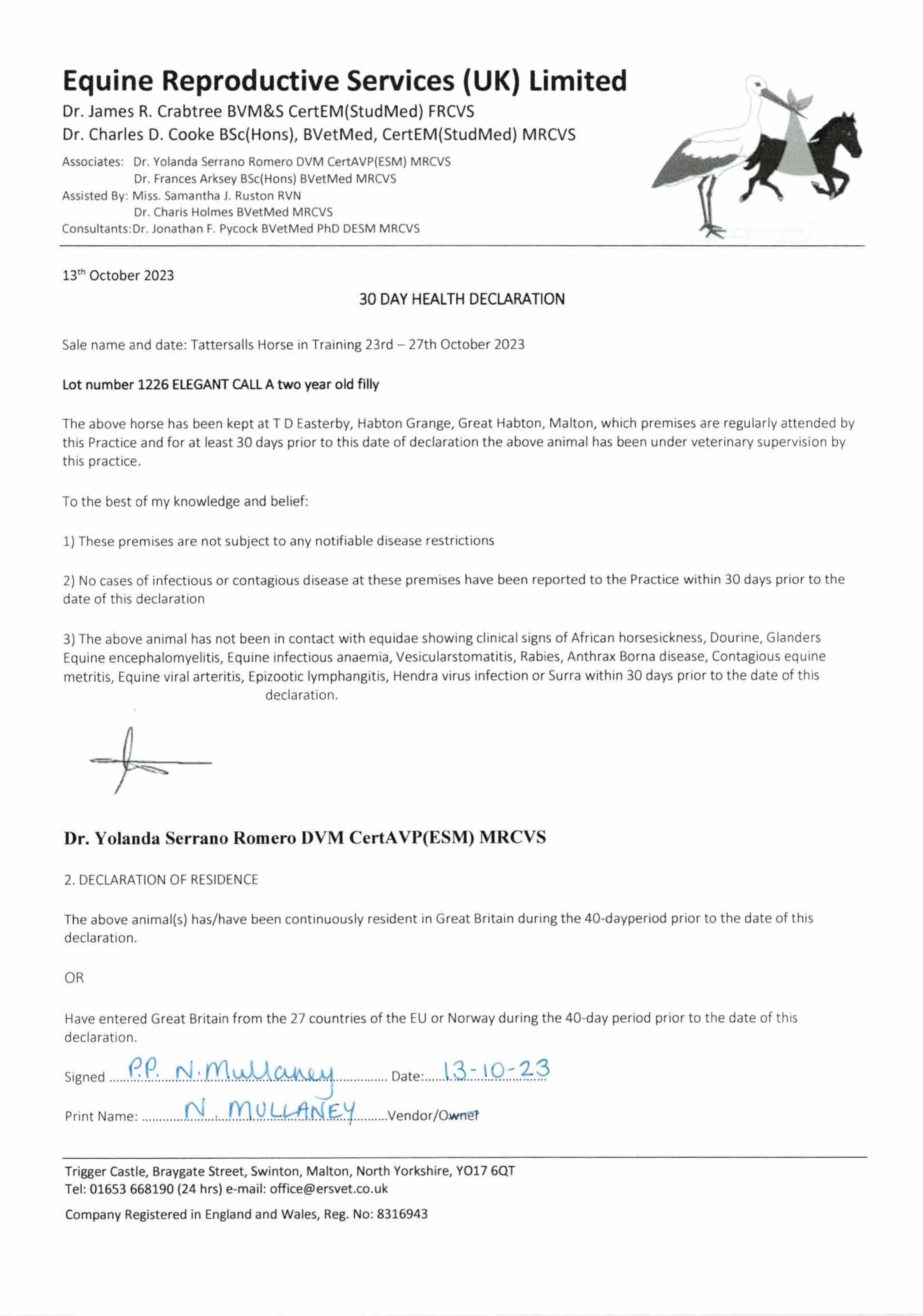 ELEGANT CALL (IRE), placed once at 2 years, 2023.
