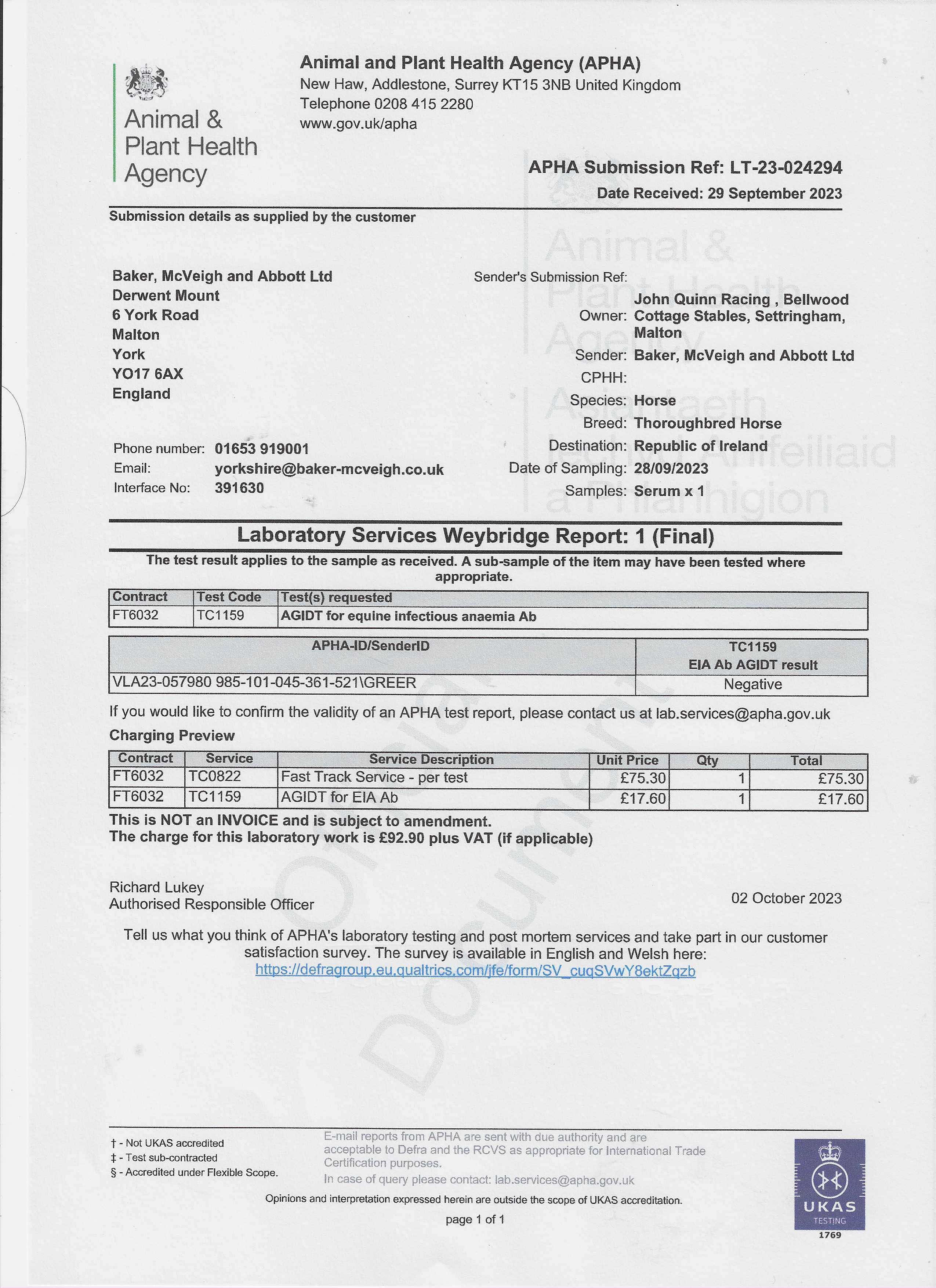 Consignor: Bellwood Cottage Stables (J. Quinn)