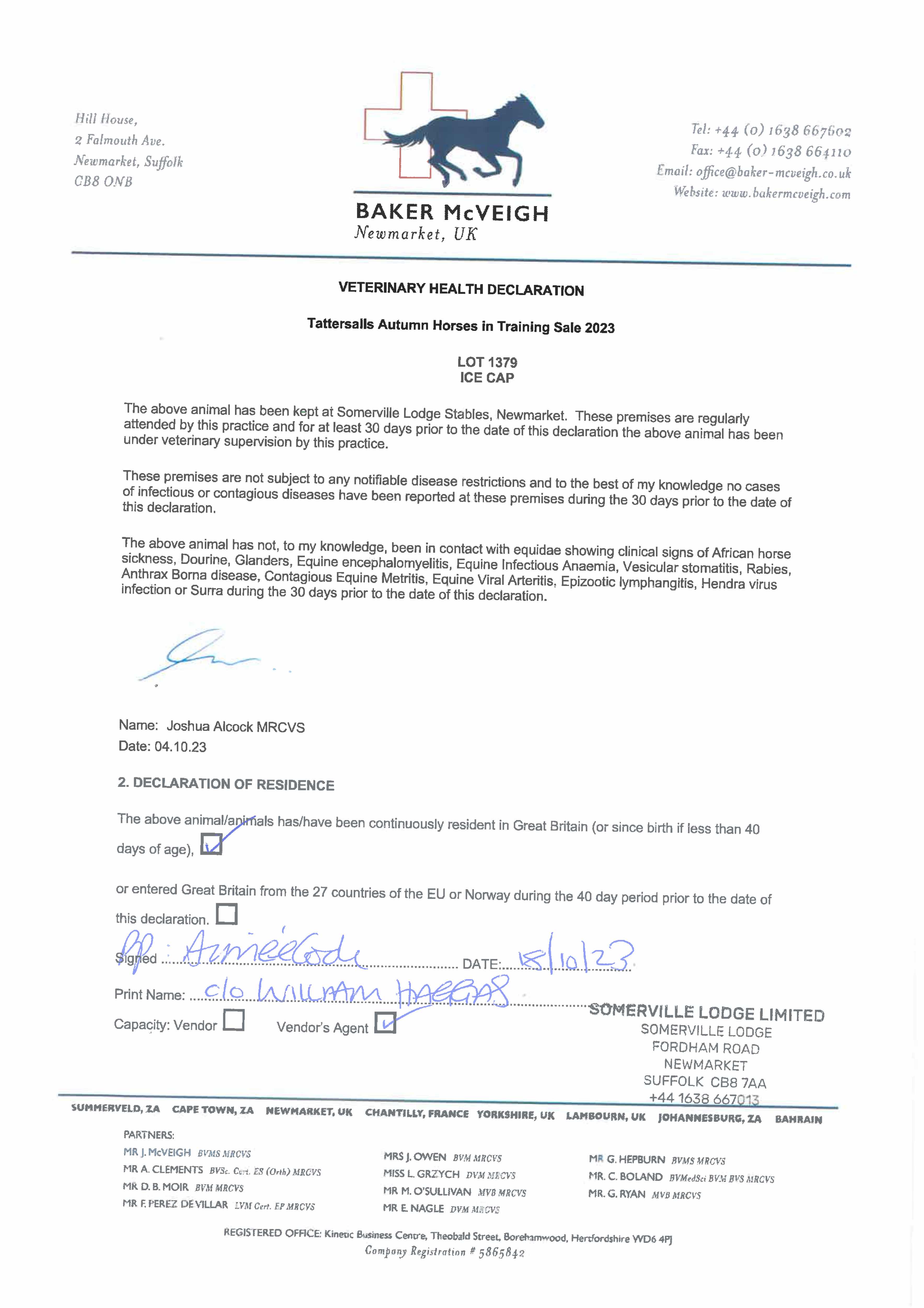 Consignor: Somerville Lodge Ltd. (W. Haggas), Agent