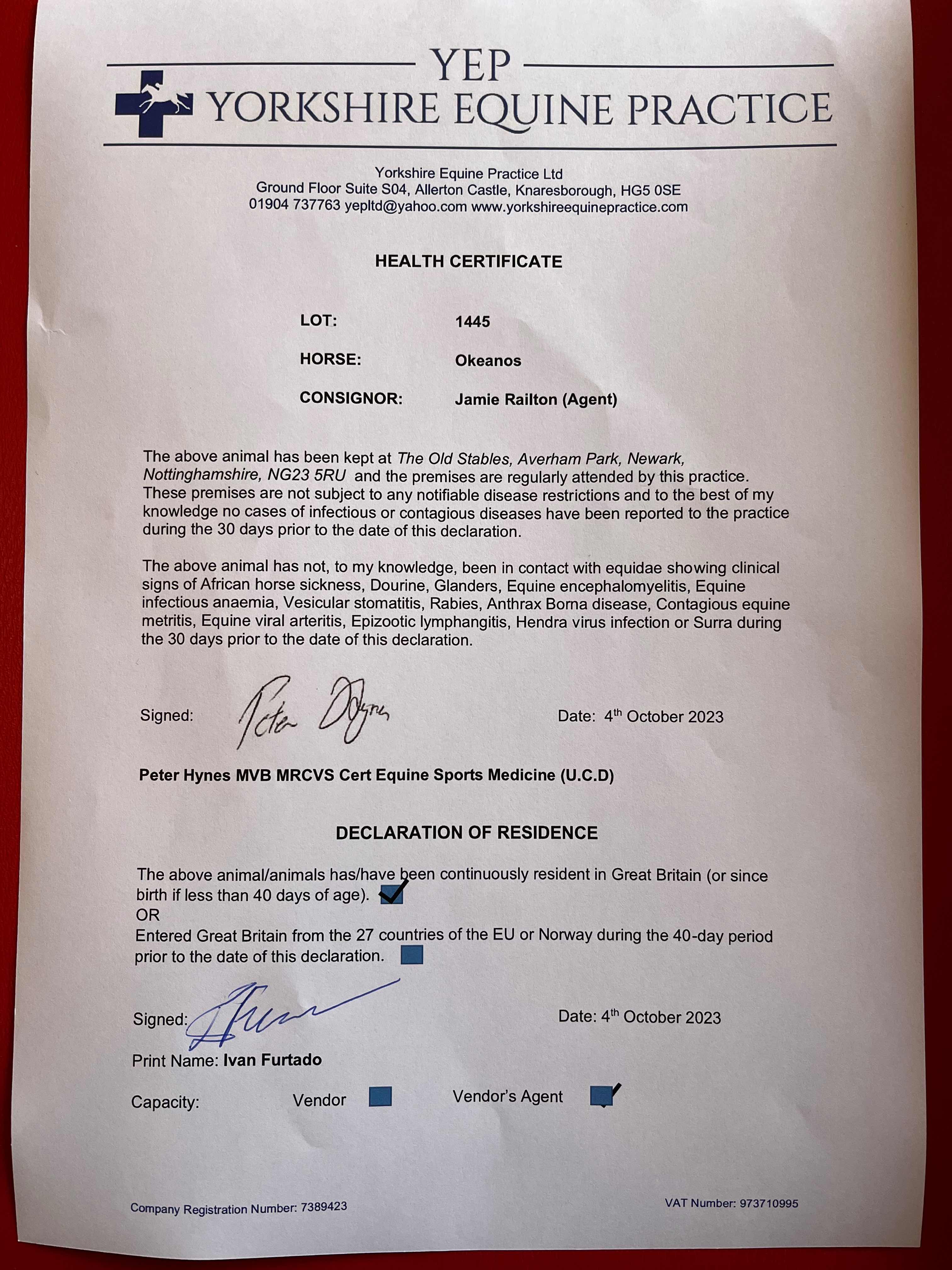 Consignor: Jamie Railton (Agent)