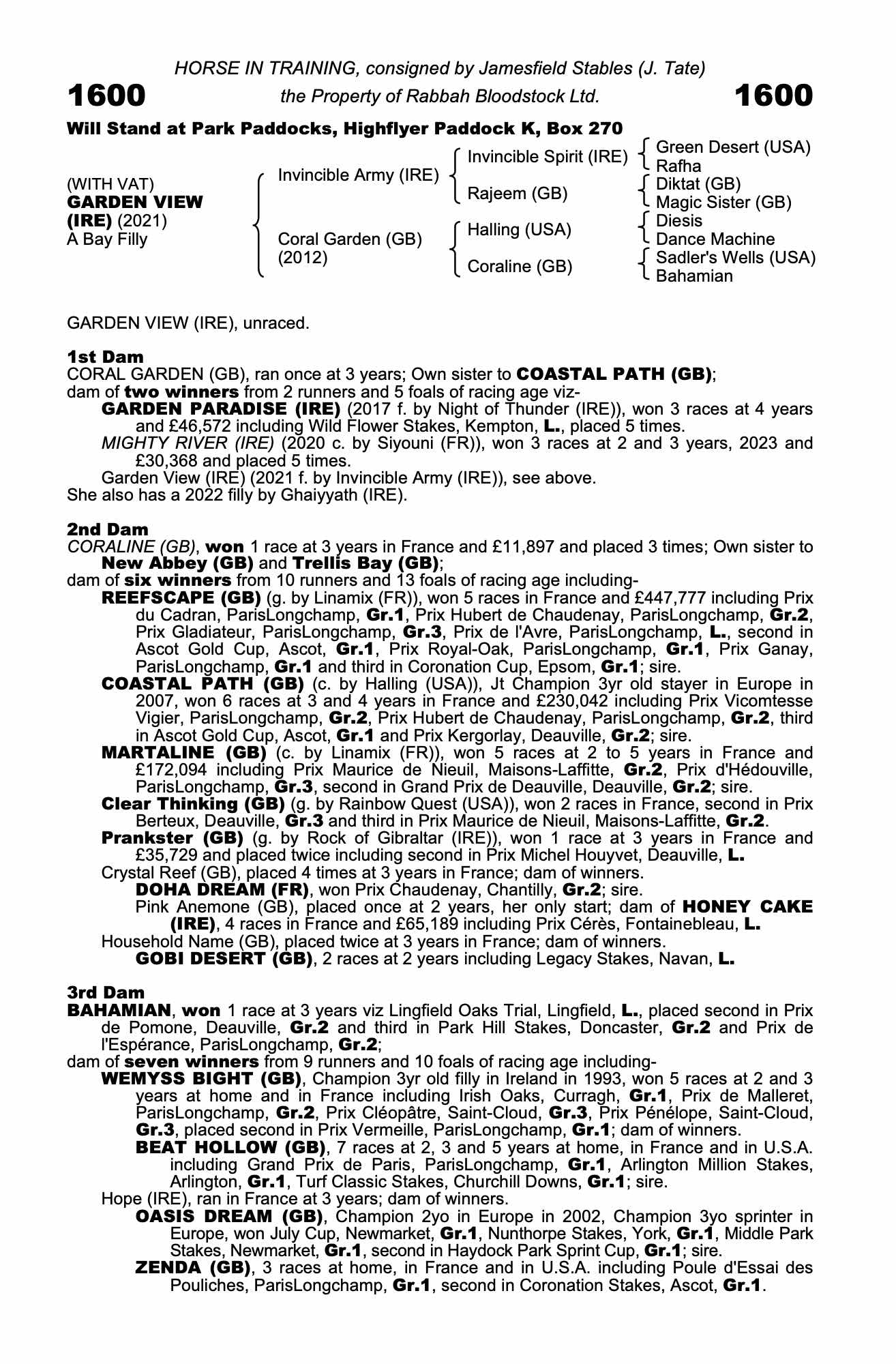 Consignor: Jamesfield Stables (J. Tate)