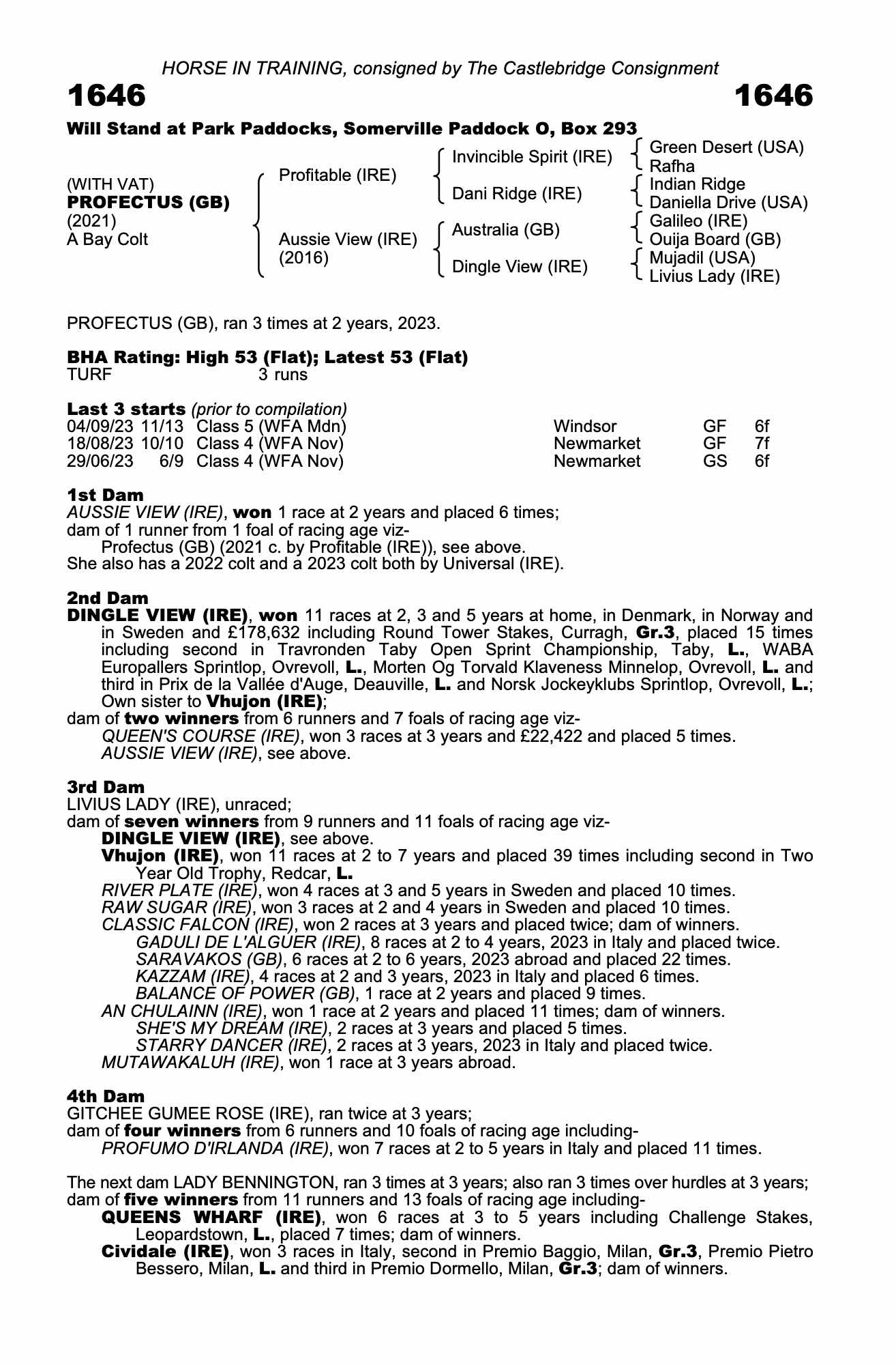 Monday 2 October:  PROFECTUS (GB), ran a few times at 2 years, 2023.