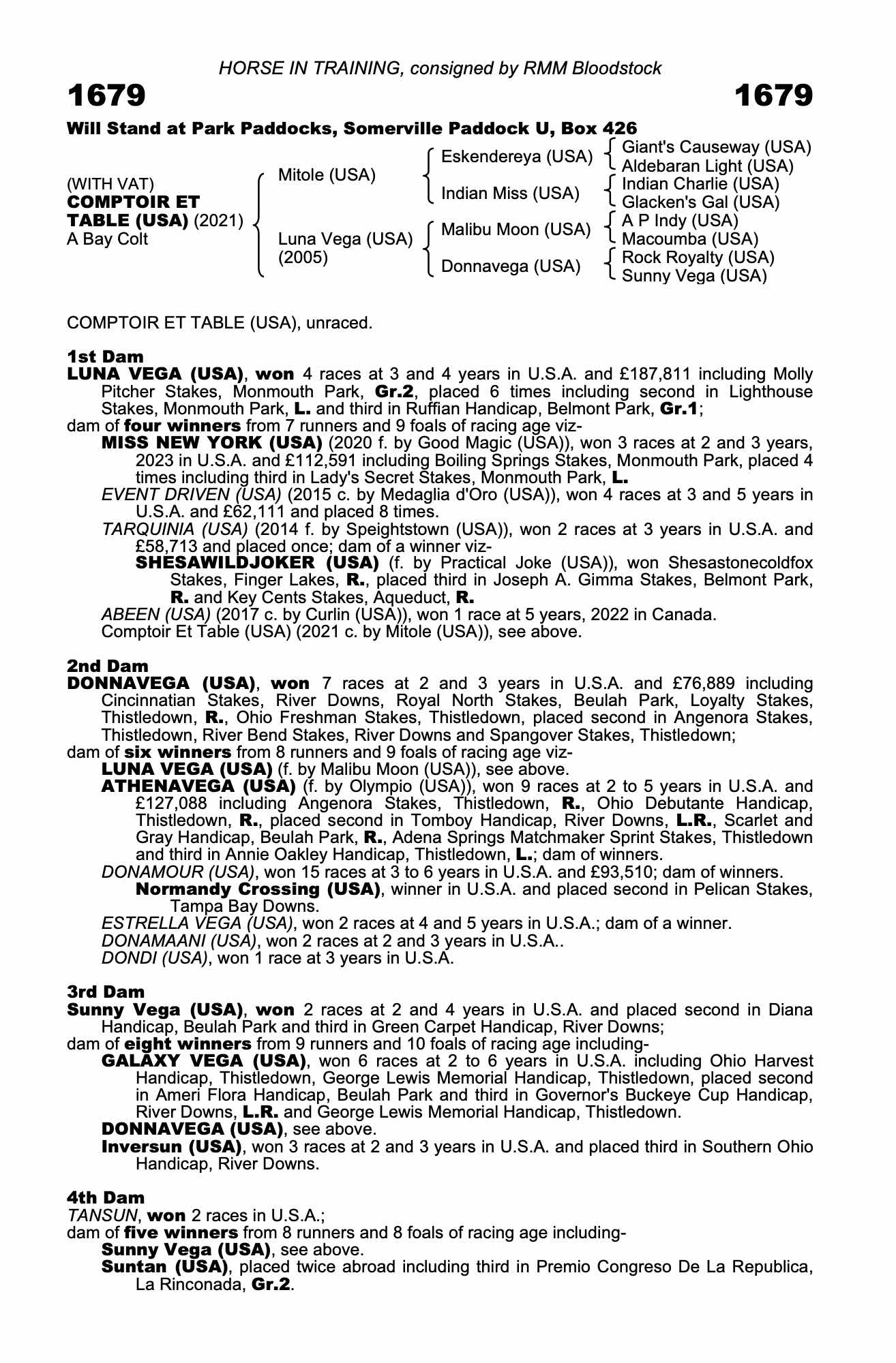 Half sister: MISS NEW YORK (USA) (2020 f. by Good Magic (USA)), won 3 races at 2 and 3 years, 2023 in U.S.A. and £129,258 and placed 5 times including second in Twixt Stakes, Laurel.