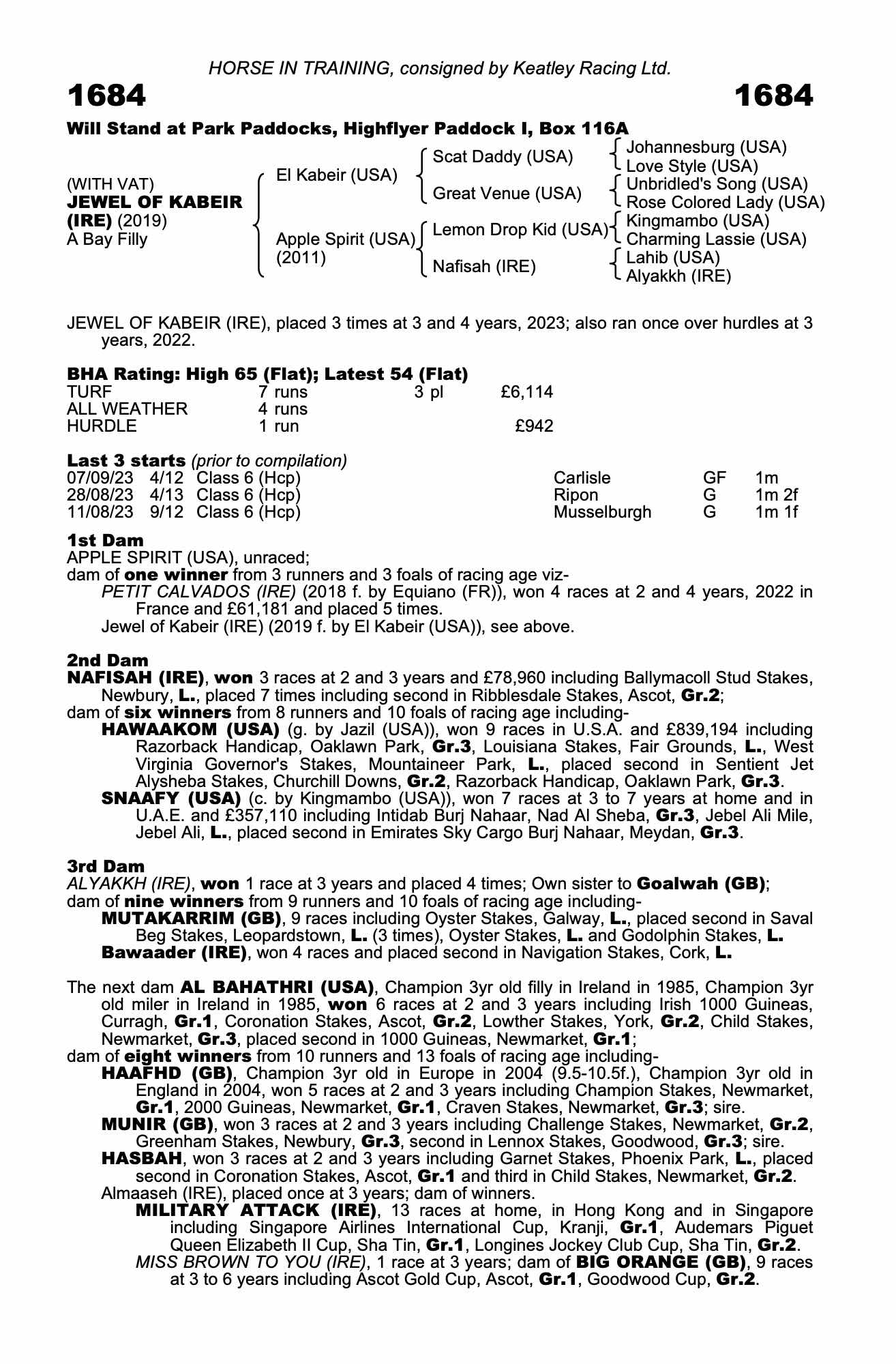 JEWEL OF KABEIR (IRE), placed 4 times at 3 and 4 years, 2023; also ran once over hurdles at 3 years, 2022.