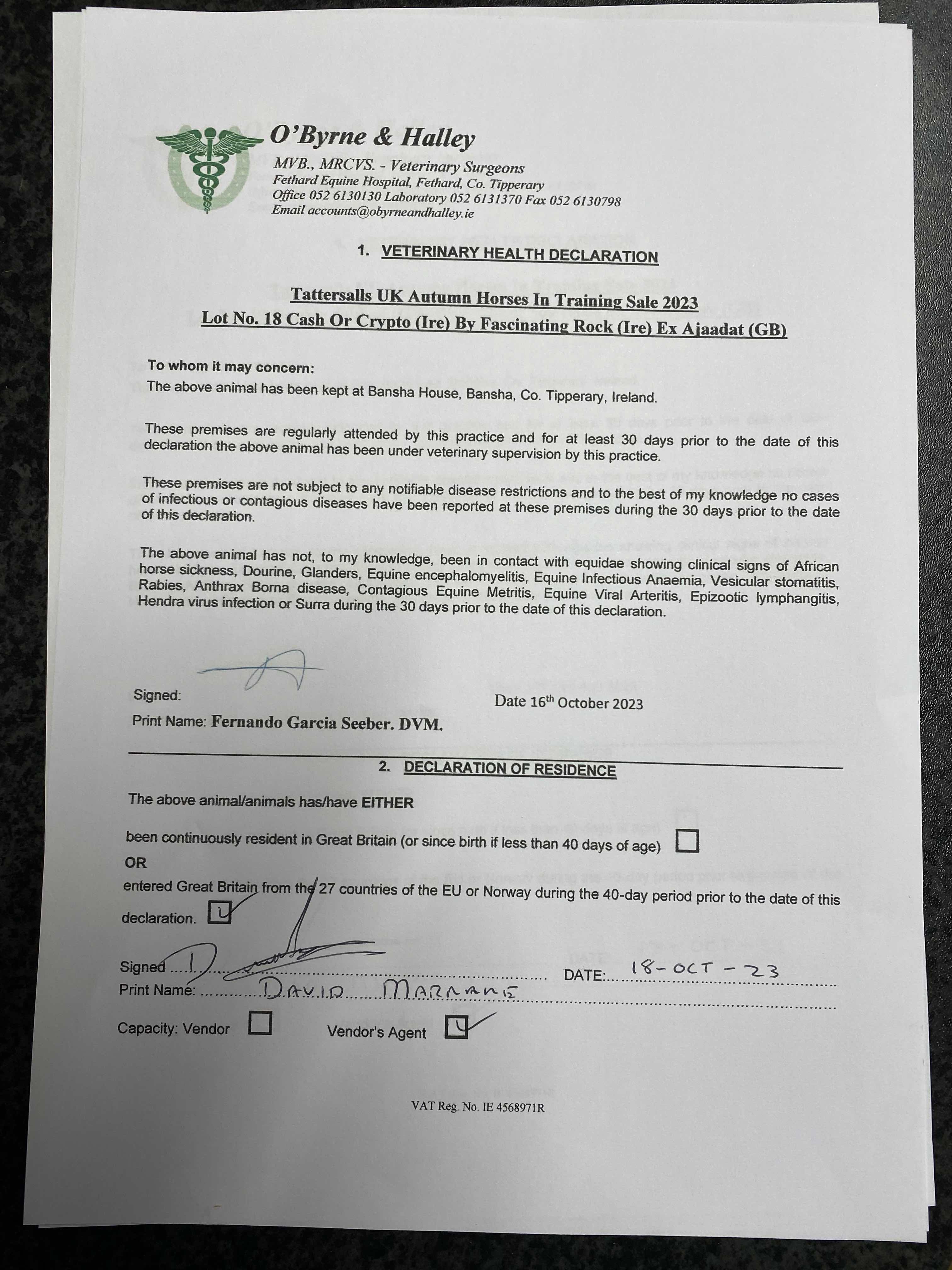 Consignor: Jamie Railton (Agent)
