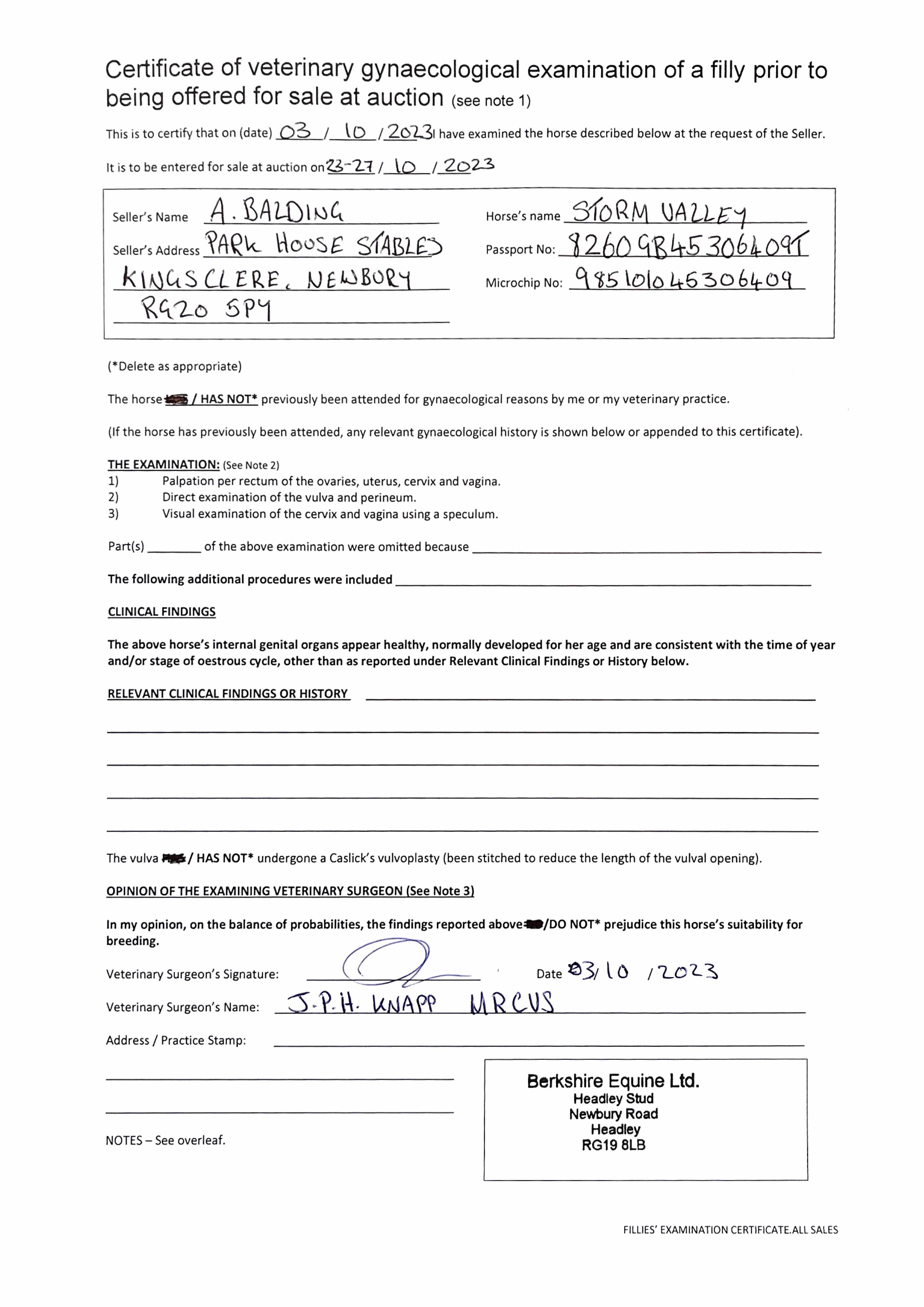 Consignor: Park House Stables (A. Balding)