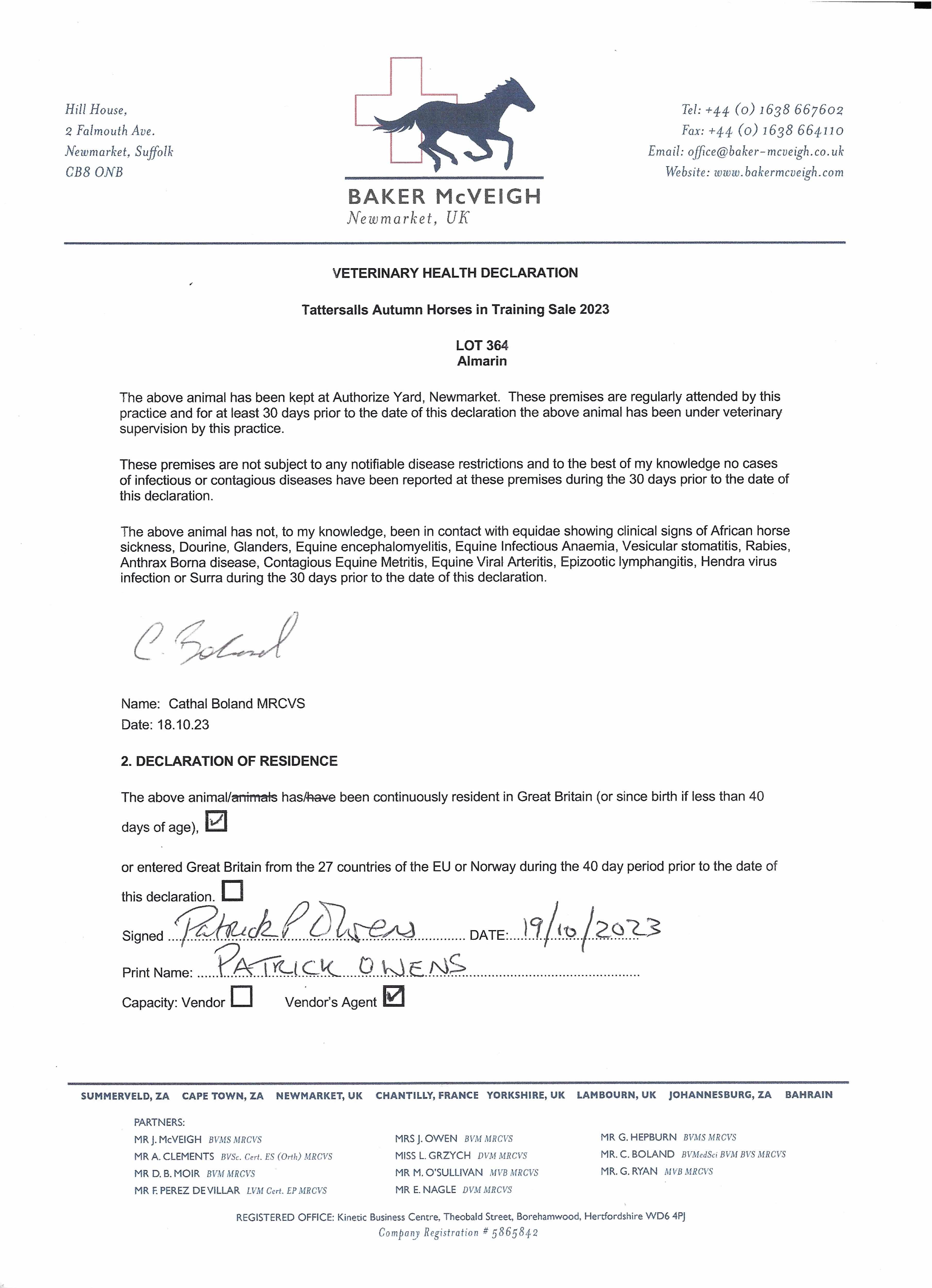 ALMARIN (IRE), won 2 races at 2 and 3 years, 2023 and £31,463 including Grassroots Series Mile Final Handicap Stakes (Class 2), Nottingham, placed 3 times.