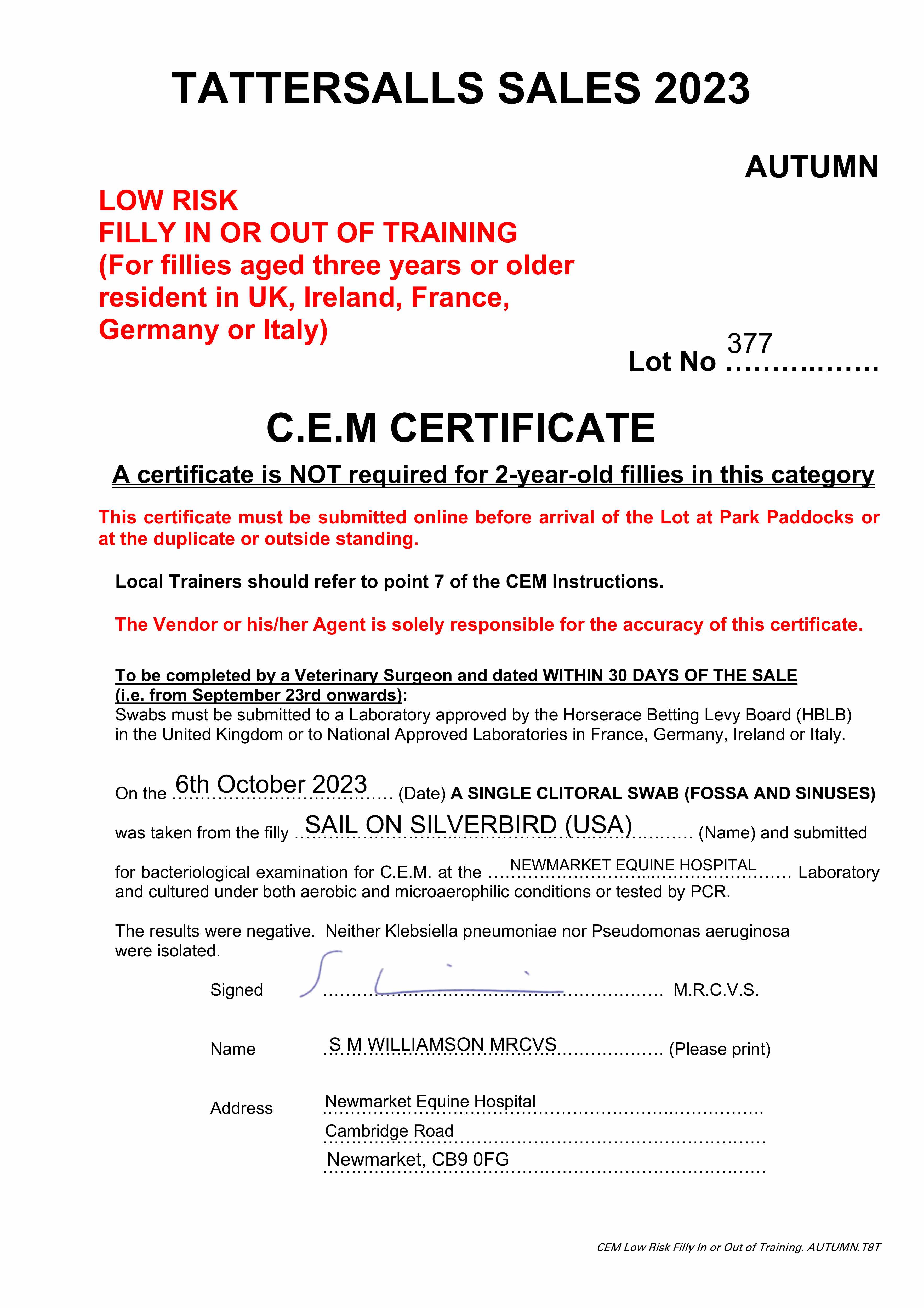 Autumn Horses In Training Sale 2024 lot 109 La Fleur Petrus (USA) (F. by Street Boss (USA)), Kingsley Park=>David Menuisier 20,000 gns