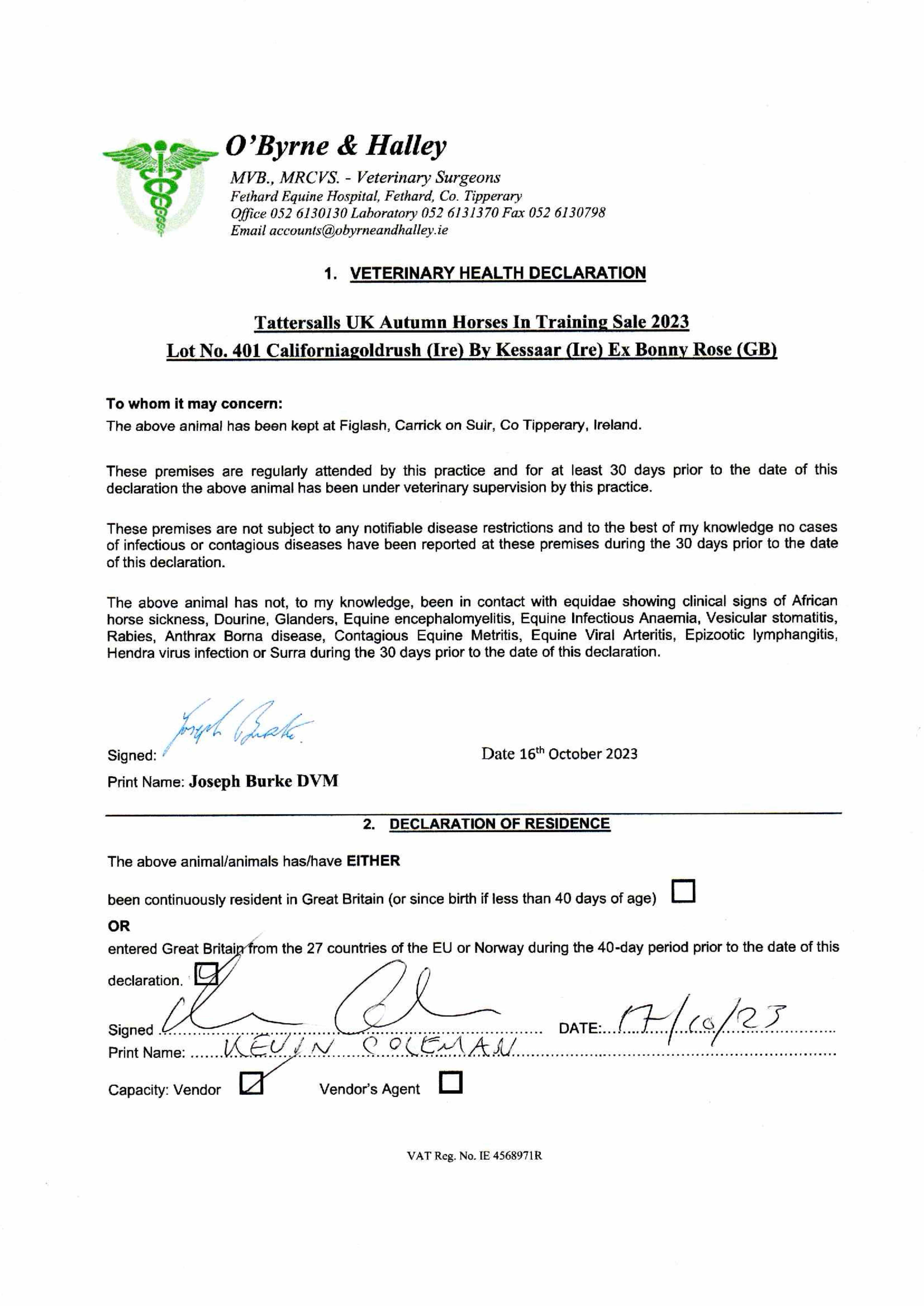 Consignor: Slievebrook House Stud, Ireland