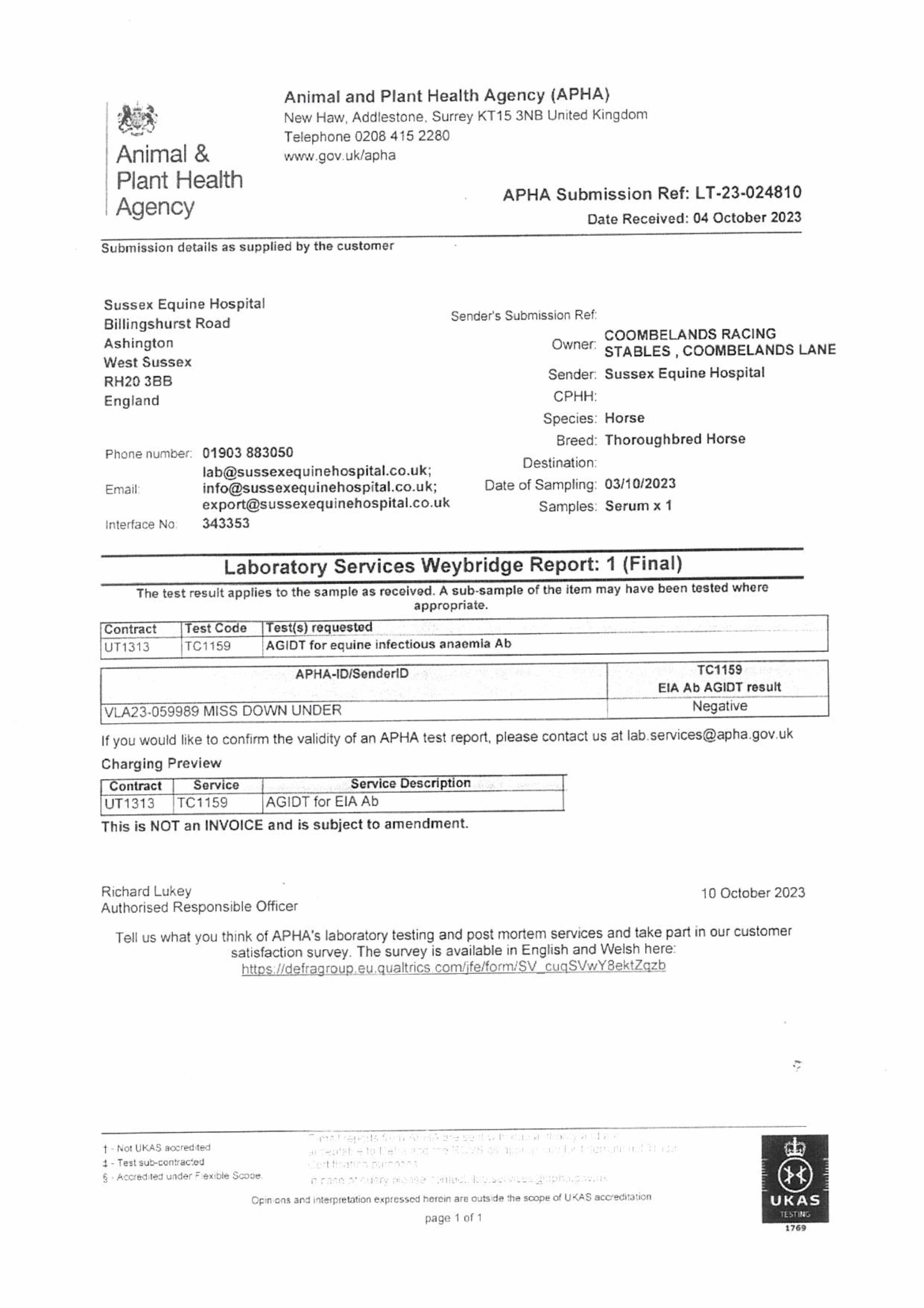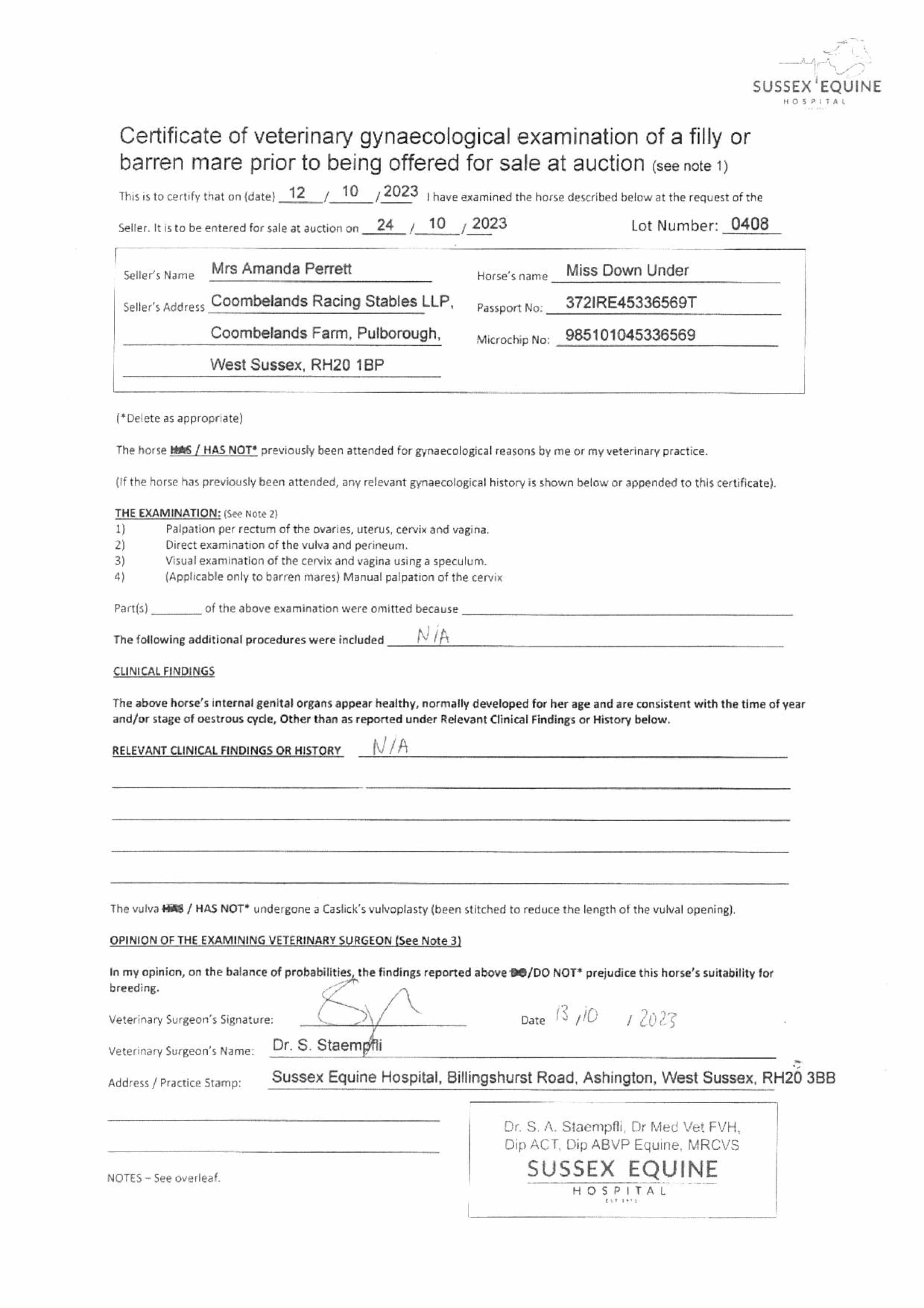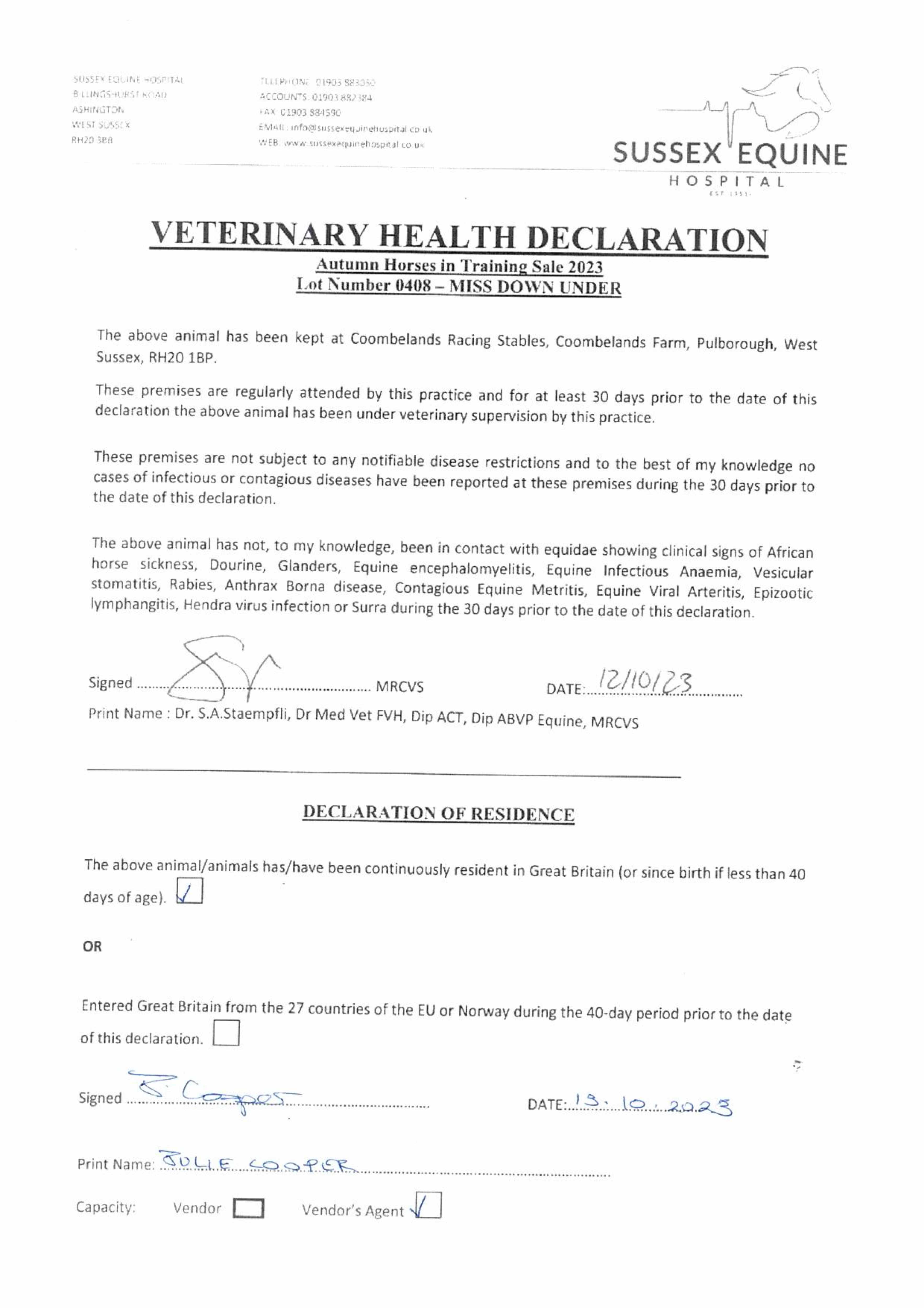 Consignor: Coombelands Racing Stables (Mrs A. Perrett)