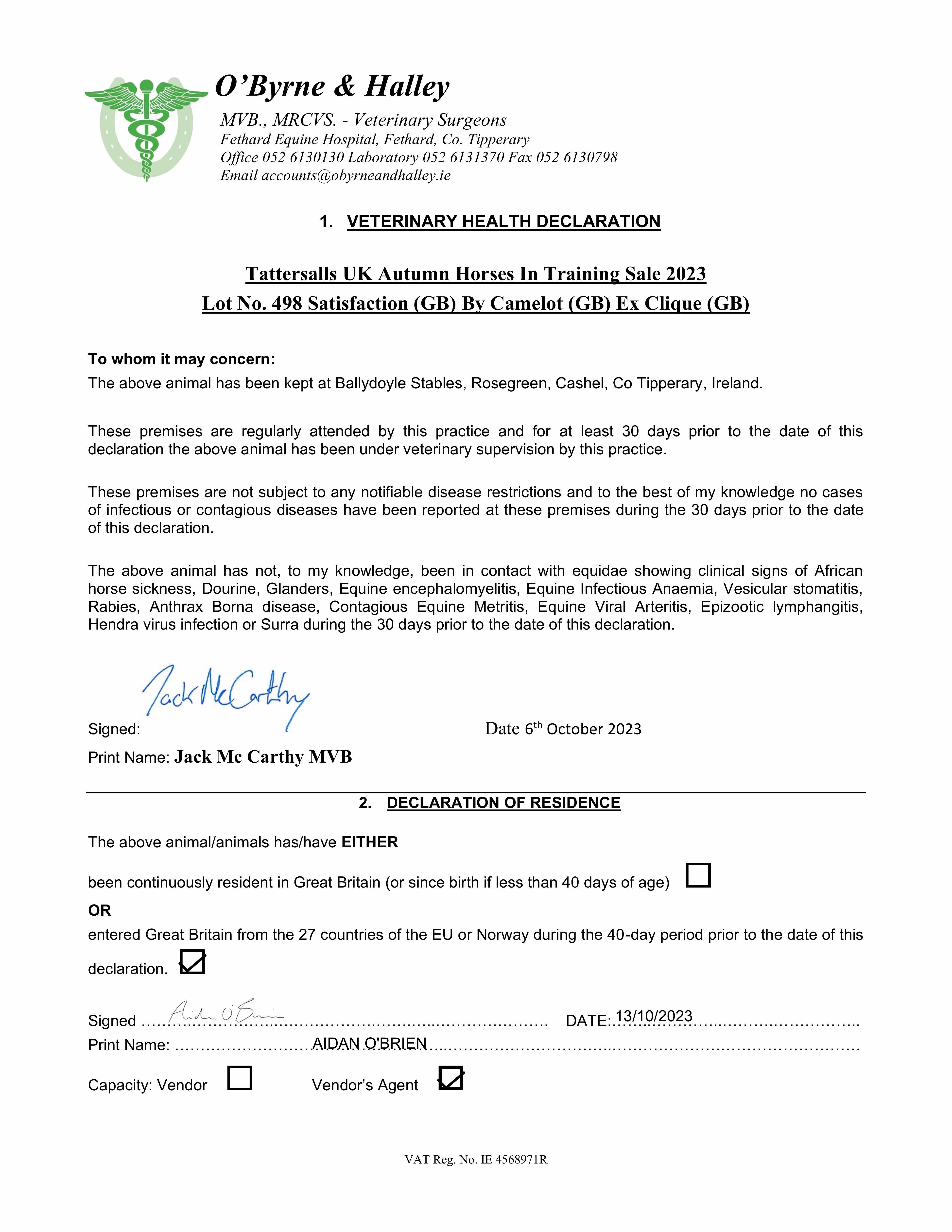 October Yearling Sale, Book 1 2022 lot 407, Rathbarry Stud, Ireland (Agent)=>M V Magnier & White Birch Farm 300,000 gns