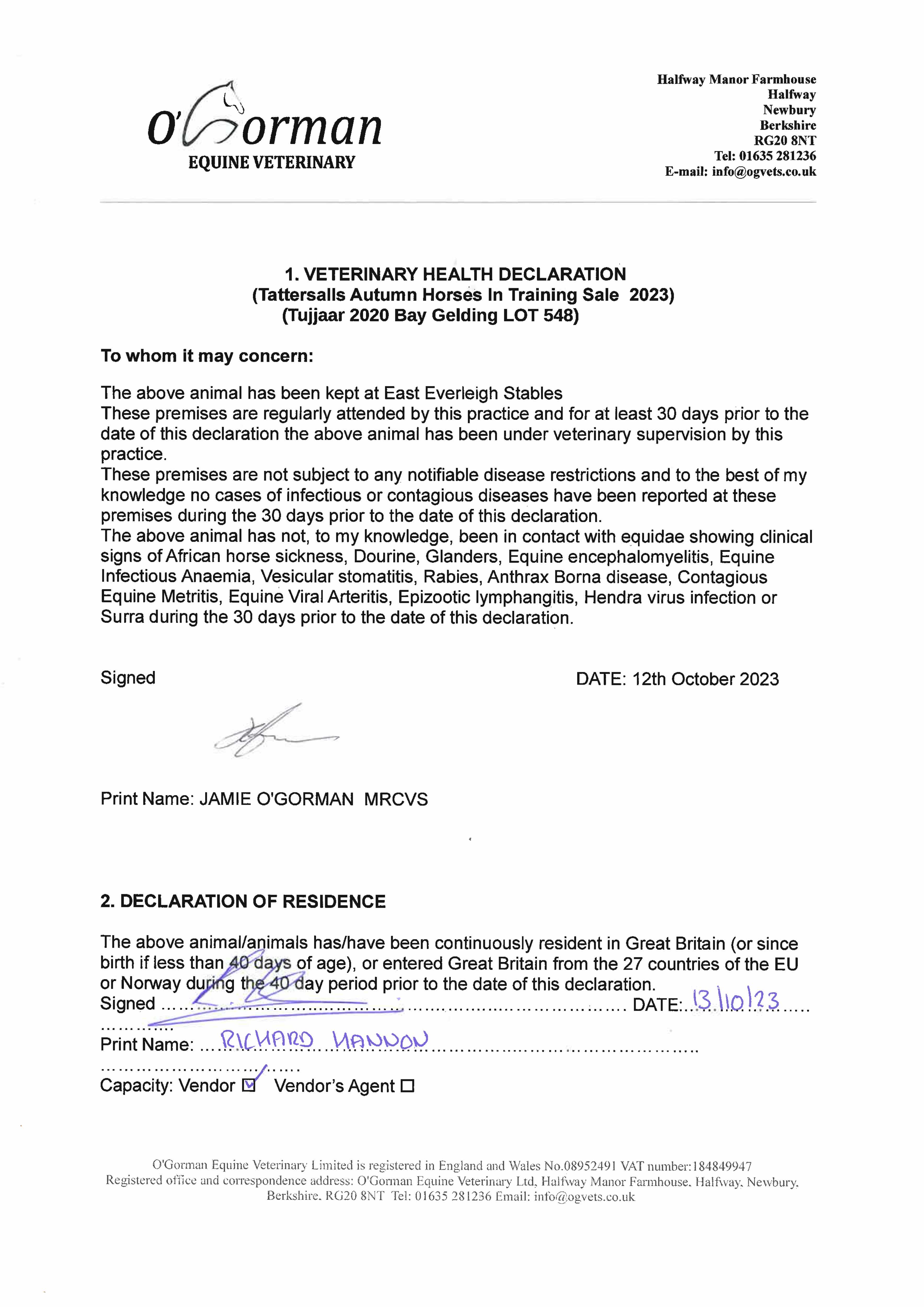 Consignor: Shadwell Estate Company Ltd.