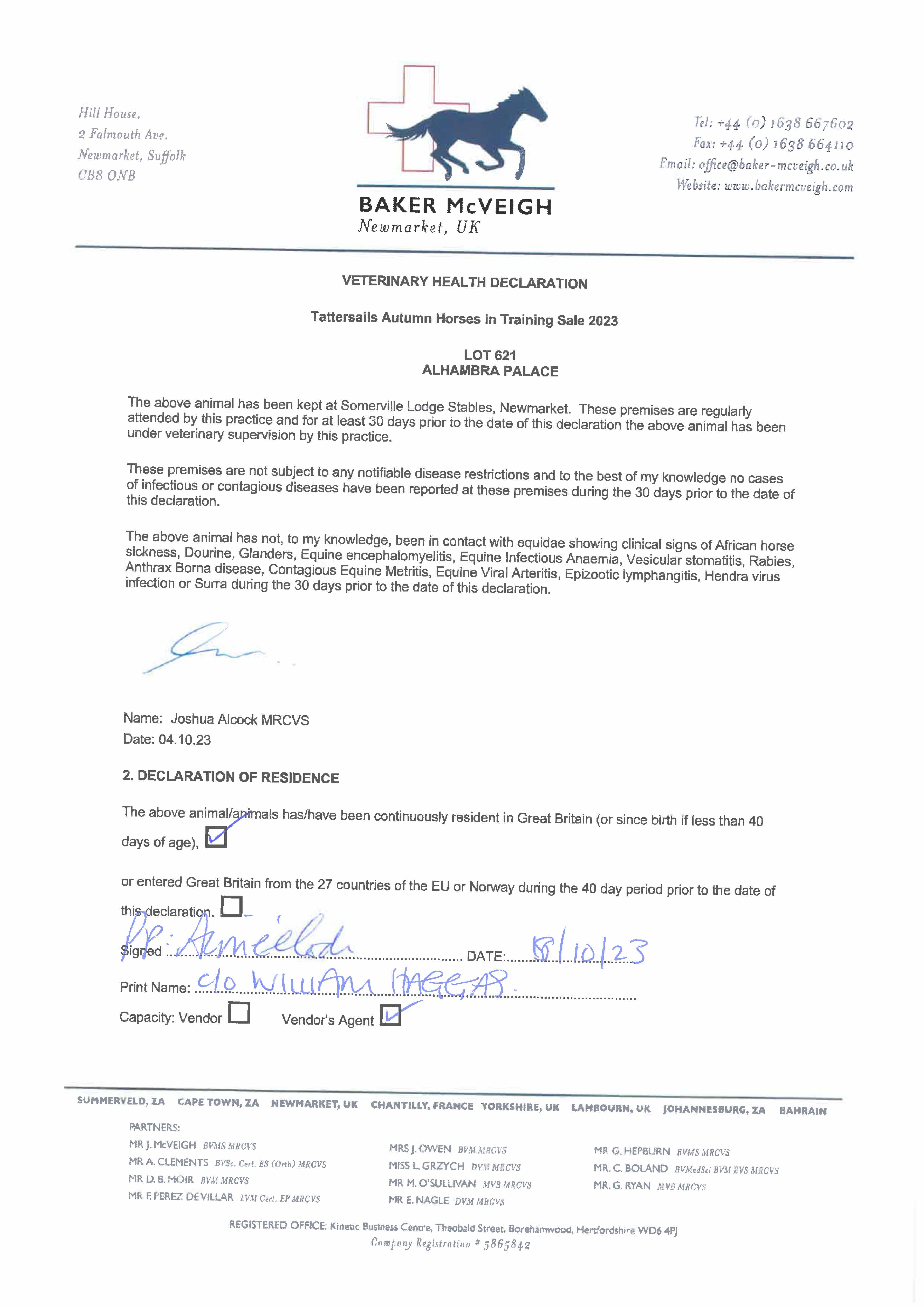 Consignor: Somerville Lodge Ltd. (W. Haggas), Agent