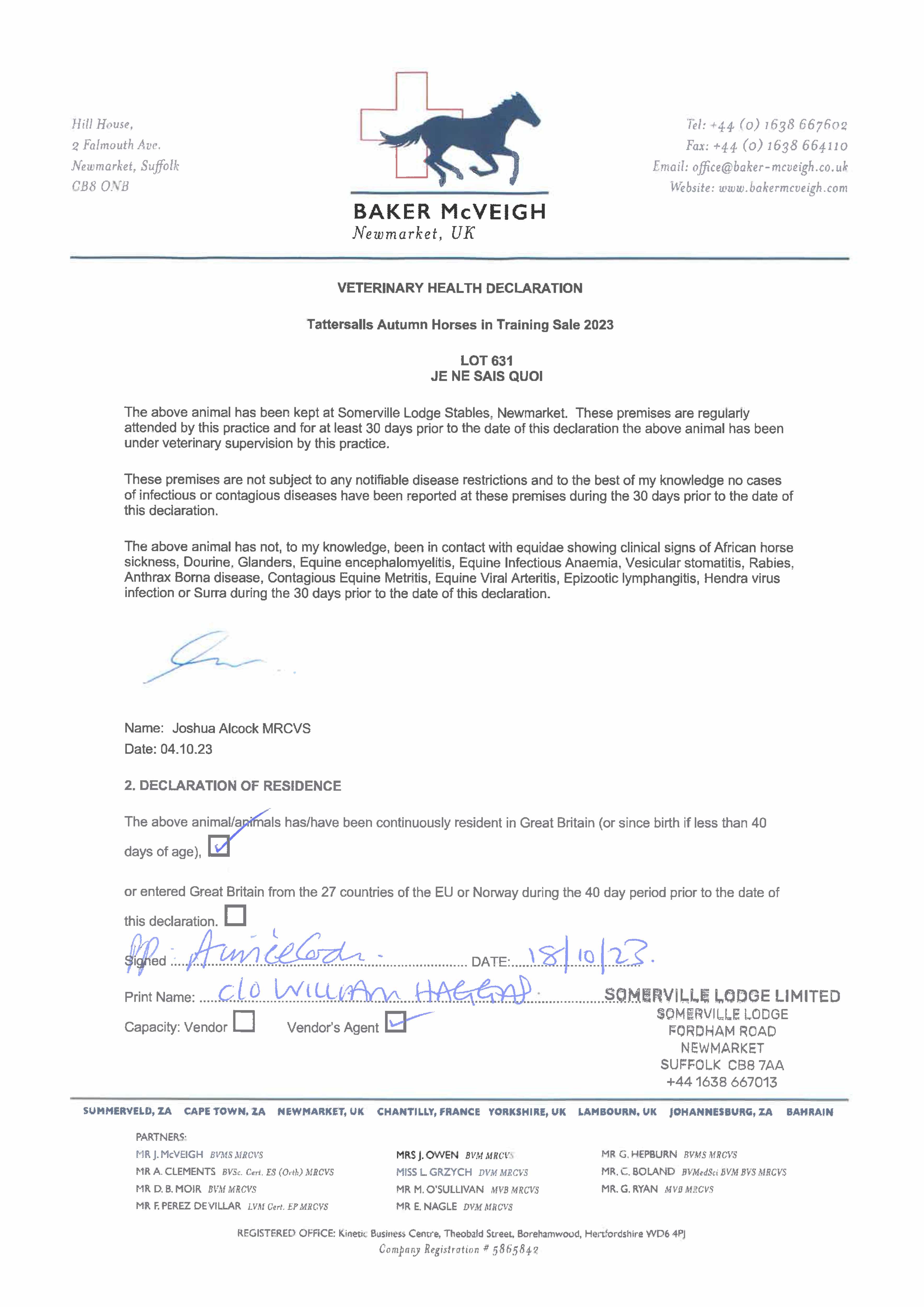 Consignor: Somerville Lodge Ltd. (W. Haggas), Agent
